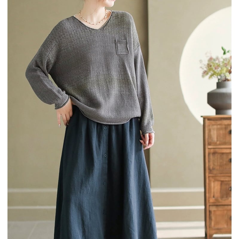 Vネック ポケットデザイン ニットプルオーバー(3色)10904
