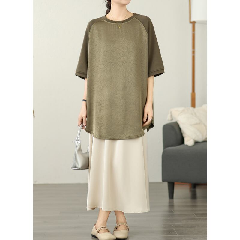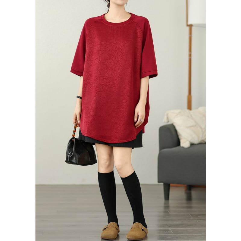 ラグランスリーブとAラインシルエットが、着心地の良さとこなれ感を両立した一枚。