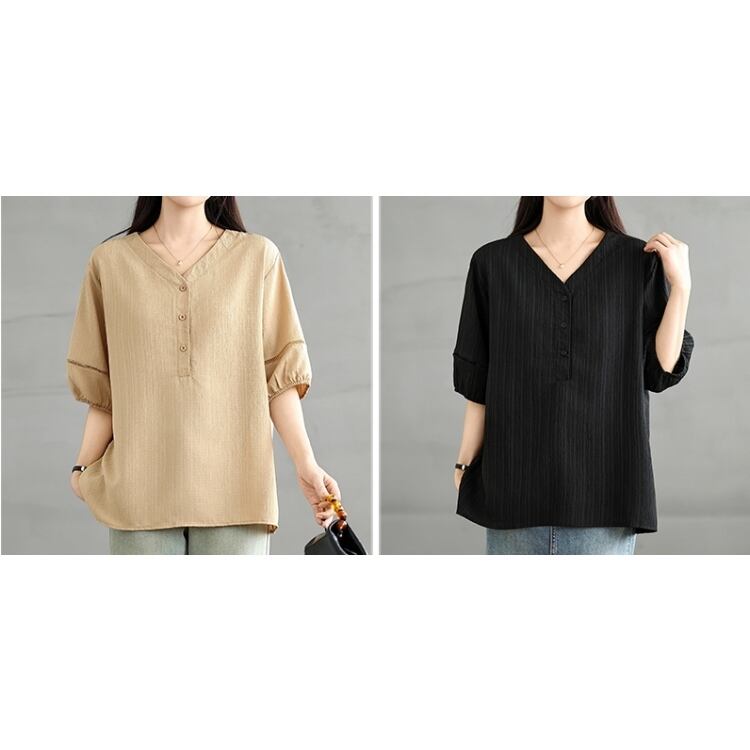 ナチュラルVネックシャツ(2色)11033