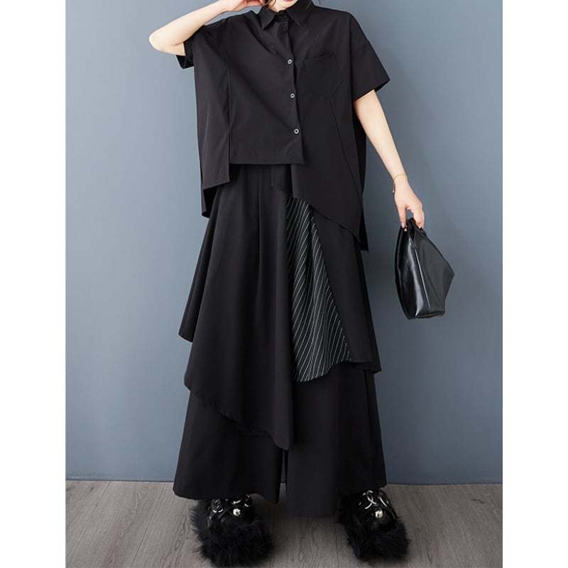 シャツ&アシンメトリーフレアパンツセット11034