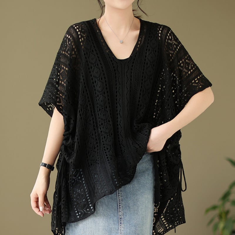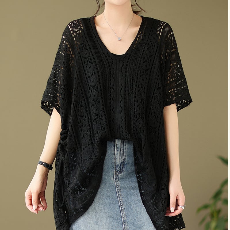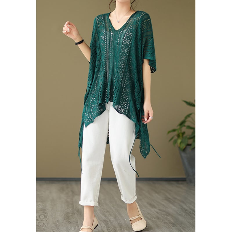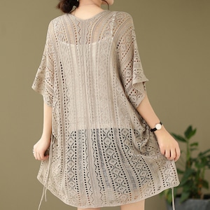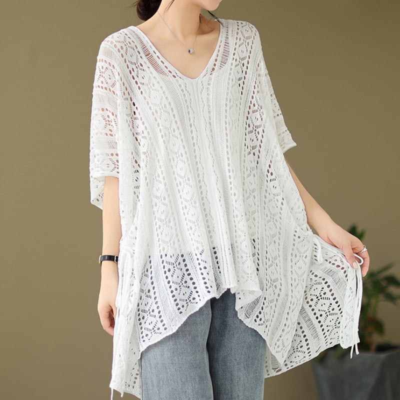 透かし編みのデザインが涼しげで、夏のレイヤードスタイルにぴったりです。