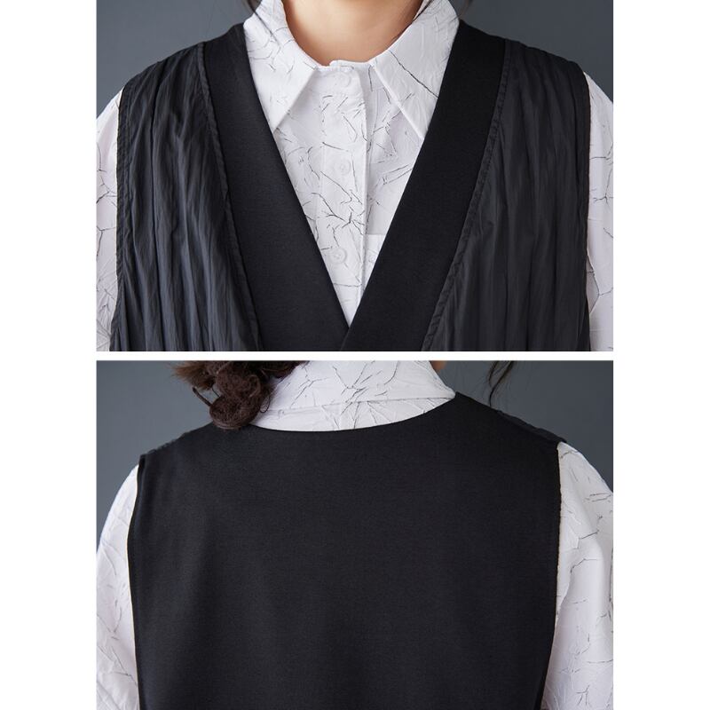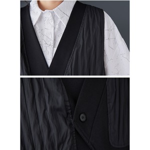 キルト風のベストは、シンプルなデザインながら存在感があり、洗練された印象を与えます。