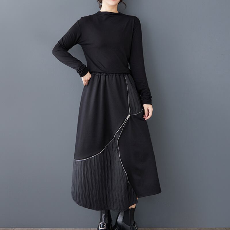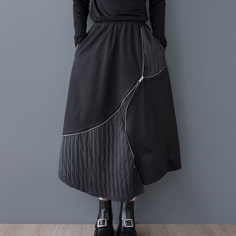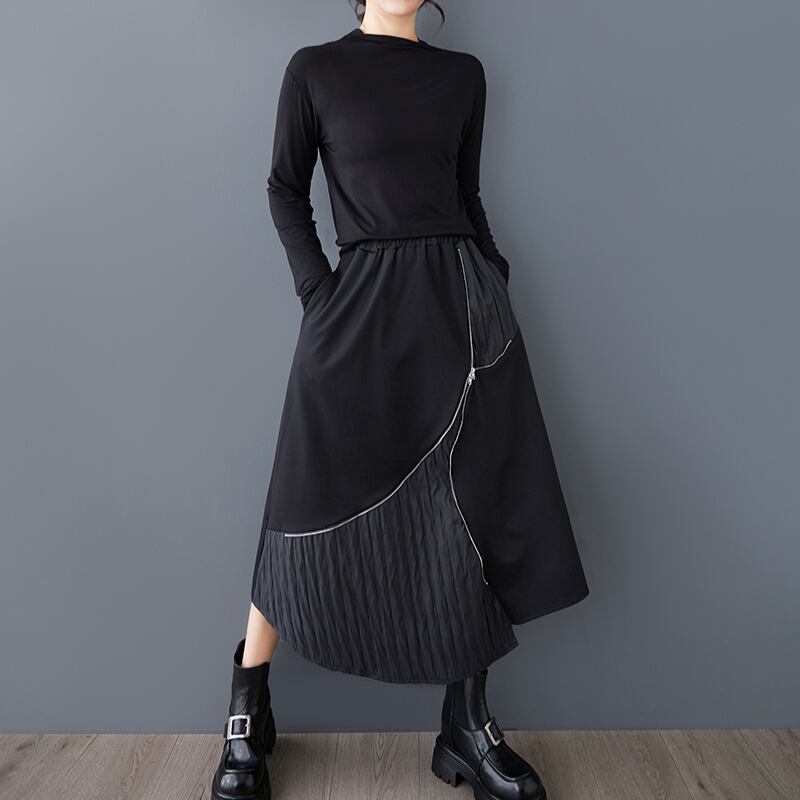 アシンメトリーなスカートは、動きのあるシルエットで個性を演出します。