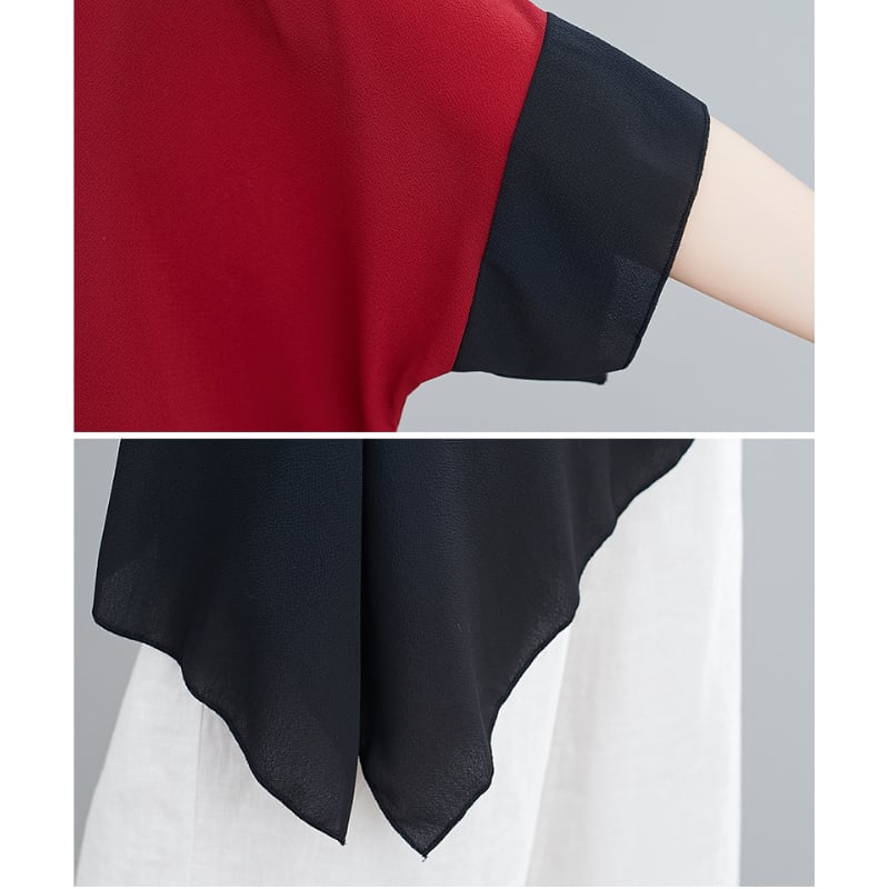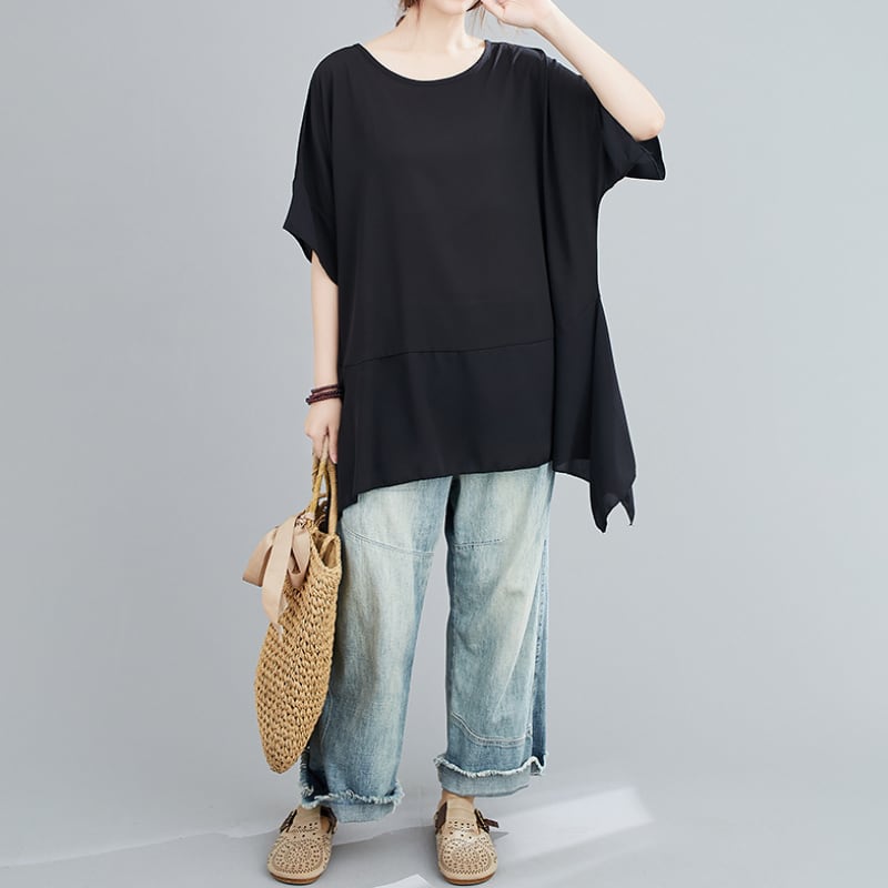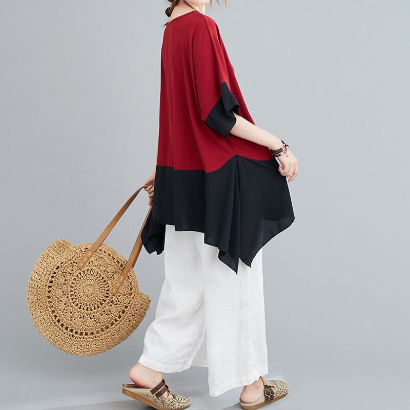 バイカラーが目を惹く、オーバーサイズのトップス。