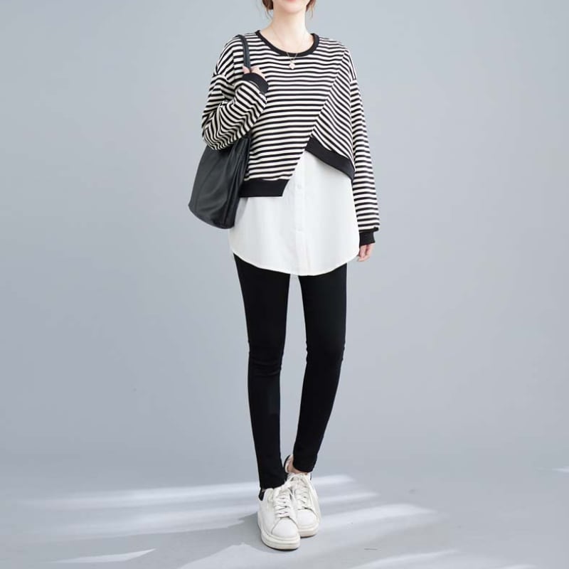 ボーダーの切り替えがアクセントになり、程よく個性を引き立てます。