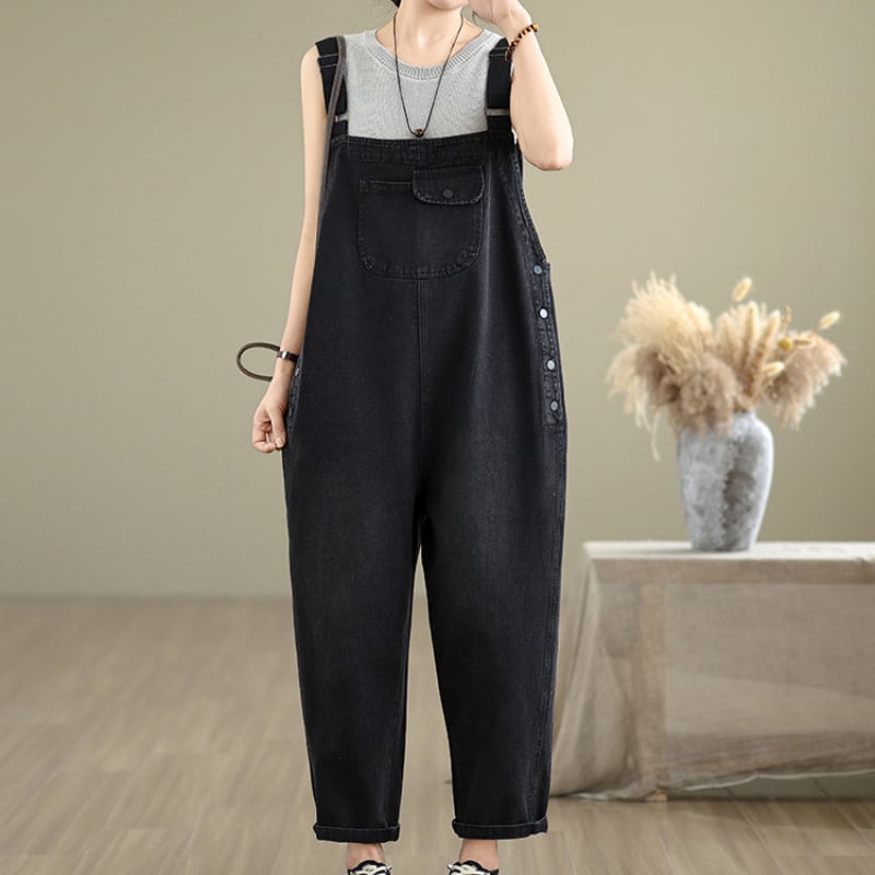 体型をさりげなくカバーしながら、お洒落に見せてくれるカジュアルなサロペットです。
