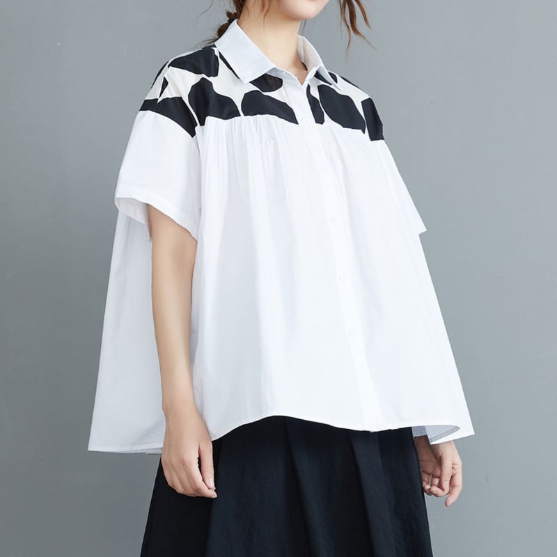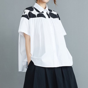 大人可愛いドット柄が、若々しく華やかな印象を演出してくれるデザインシャツ。