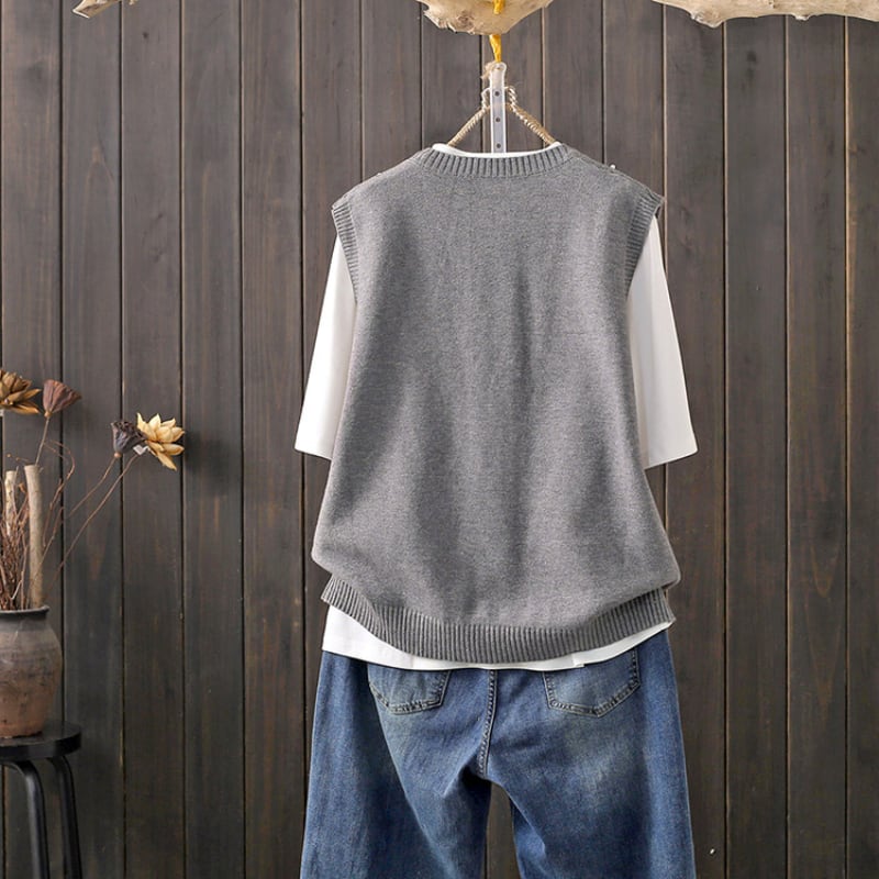 クルーネックのノースリーブデザインで、様々な着こなしに活躍します。