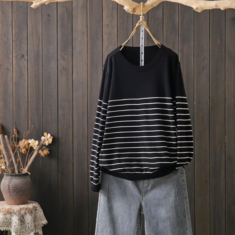 クルーネックのシンプルなデザインで、どんなボトムスとも相性抜群です。