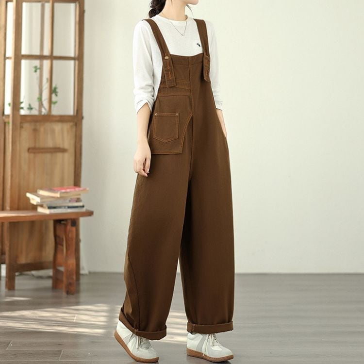 ワイドなシルエットに存在感のあるポケットをあしらったオーバーオール。