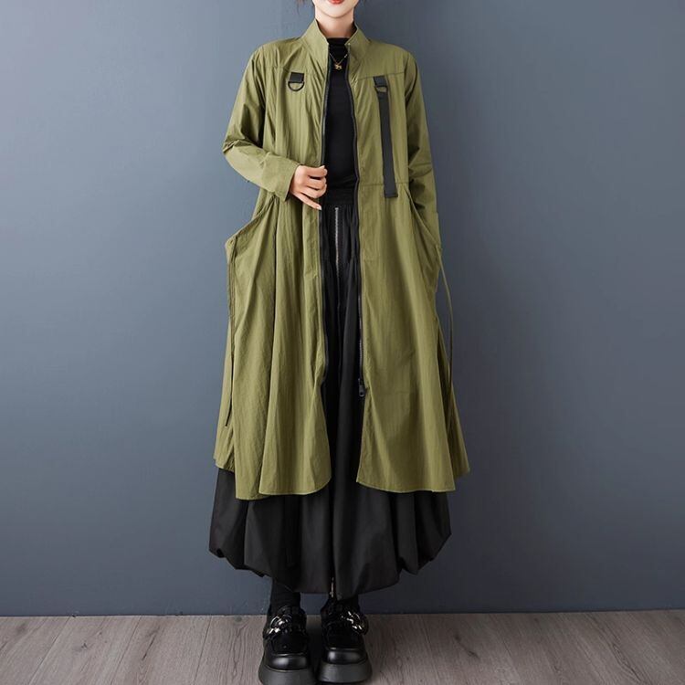 軽やかな素材感とゆったり広がるフレアシルエットが印象的なコート。