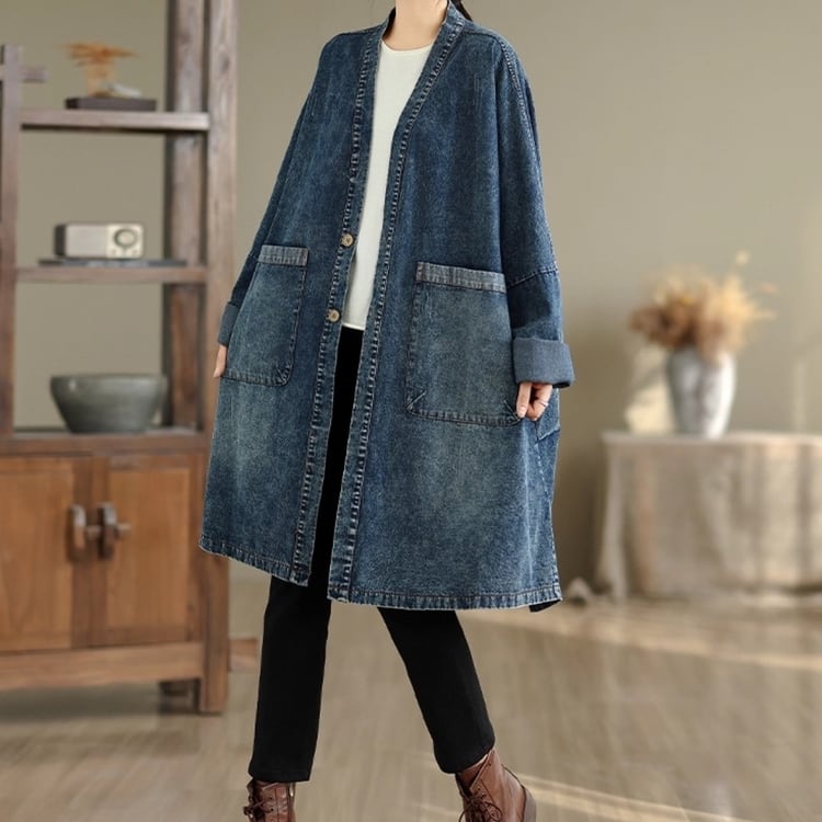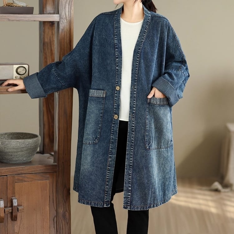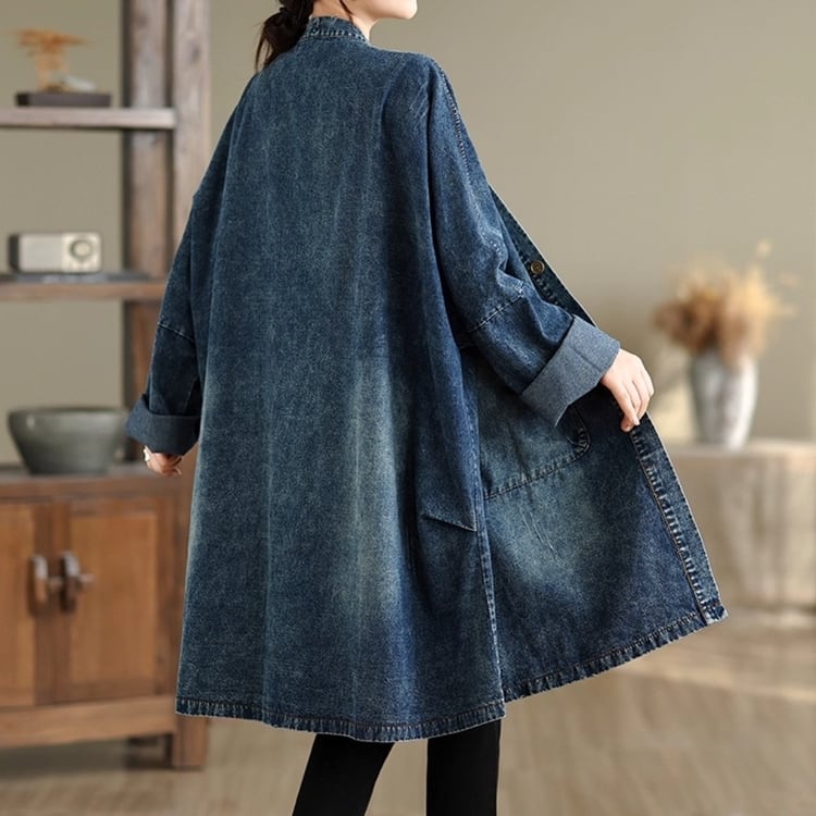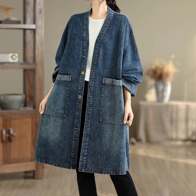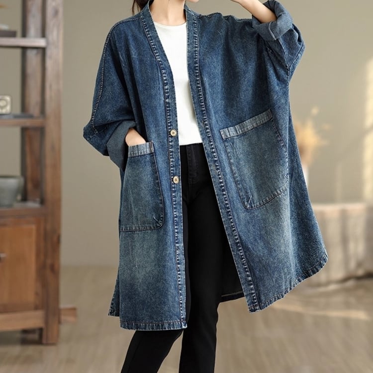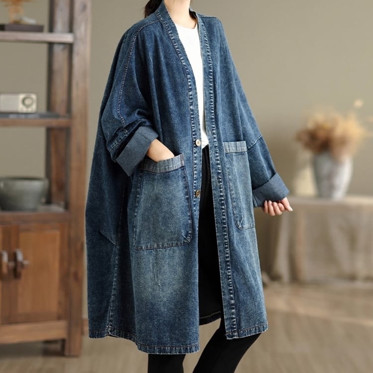 ゆったりとしたシルエットが魅力のデニムガウンコート。