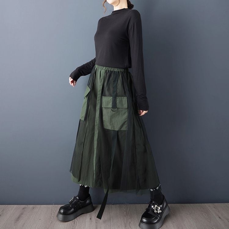 サイドのチュールが、コーディネートに軽やかさをプラスします。