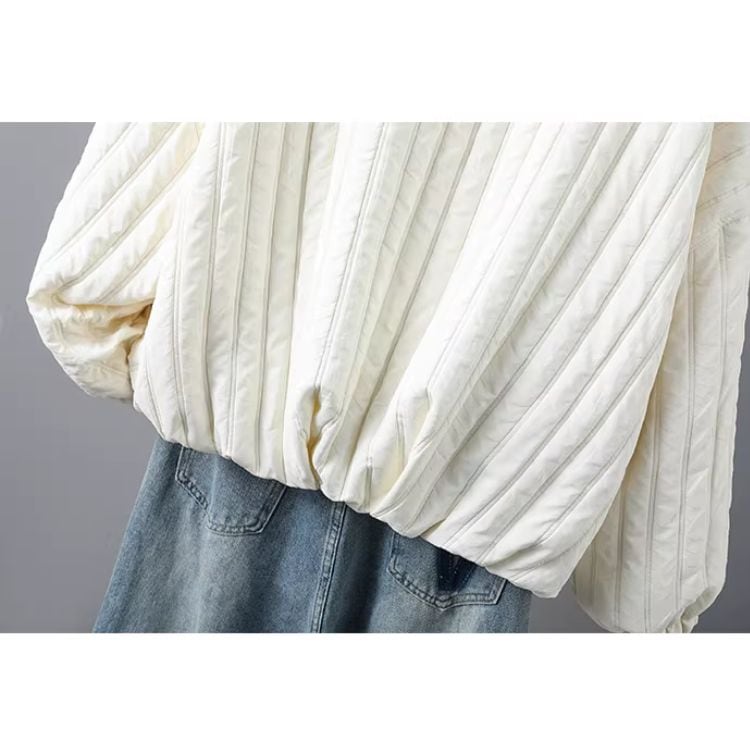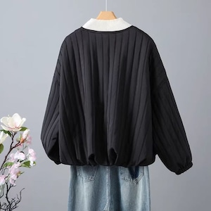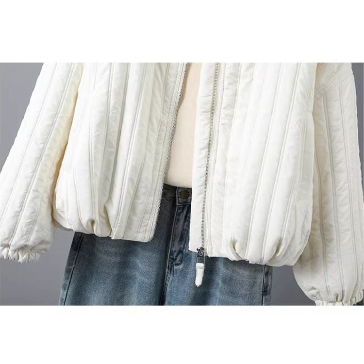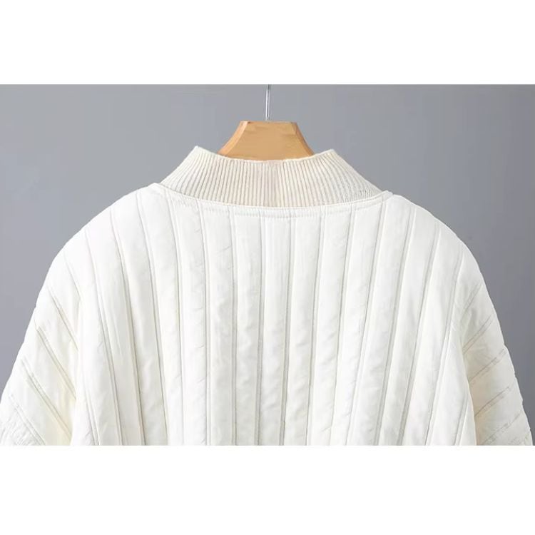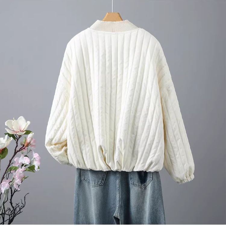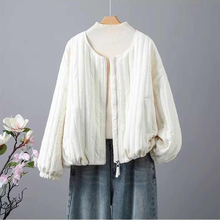軽やかなキルティングと丸みのあるシルエットが、やさしい雰囲気を添えるライトアウターです。