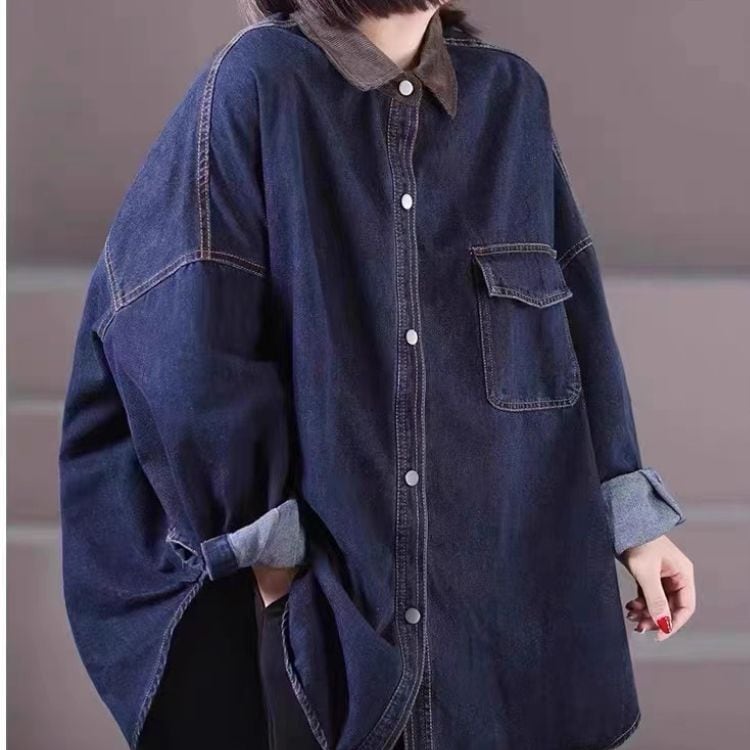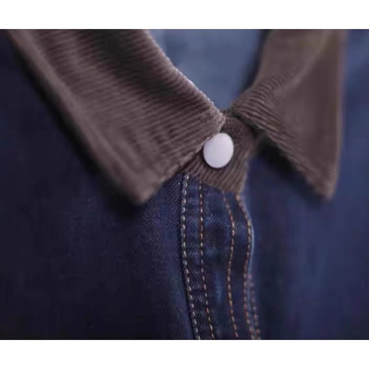 衿元のコーデュロイ切り替えが優しいアクセントになり、日常コーデにほどよい温かみをプラス。