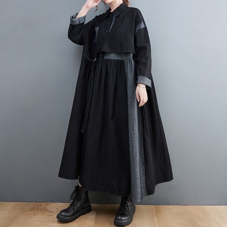 サイドや袖の切替や、ベルトが付いていたり遊び心満載のワンピースです。