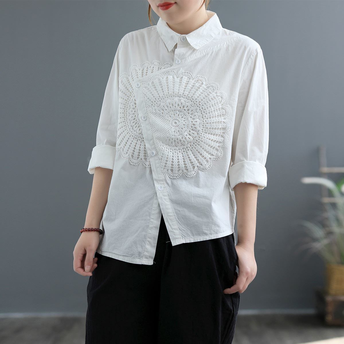 アシメでレースでシャツカラー!
