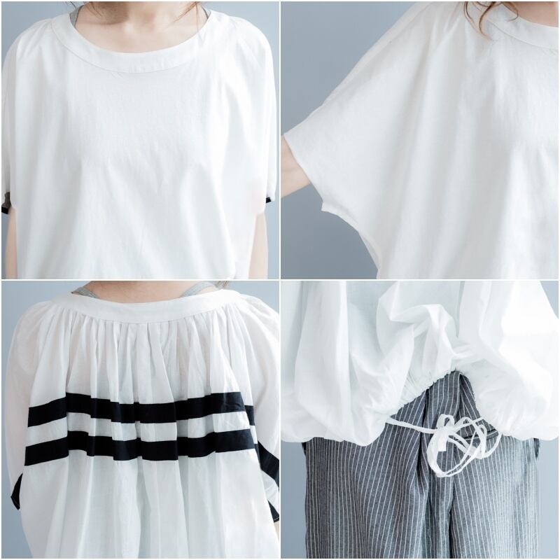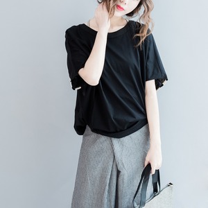 背中にたっぷりのギャザーでゆったりシルエットだけど裾が絞れるから、どんなボトムにOK!