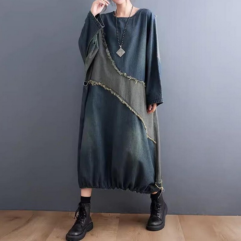 ウォッシュデニムマキシサスペンダーワンピース10113