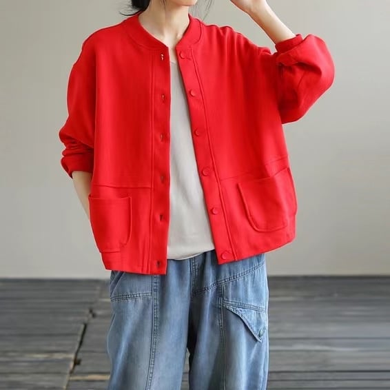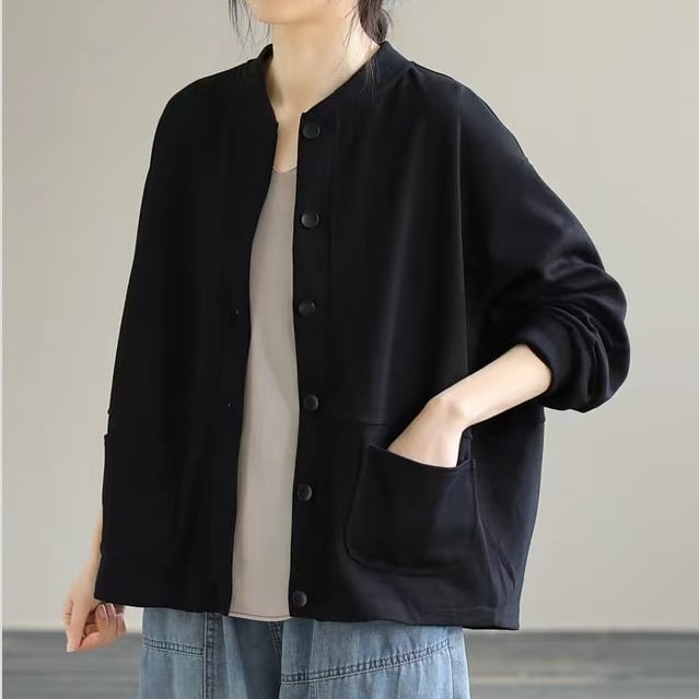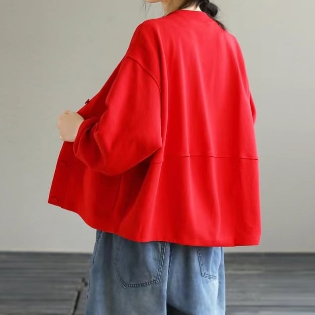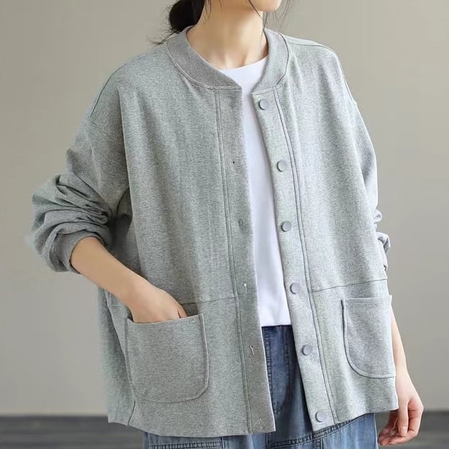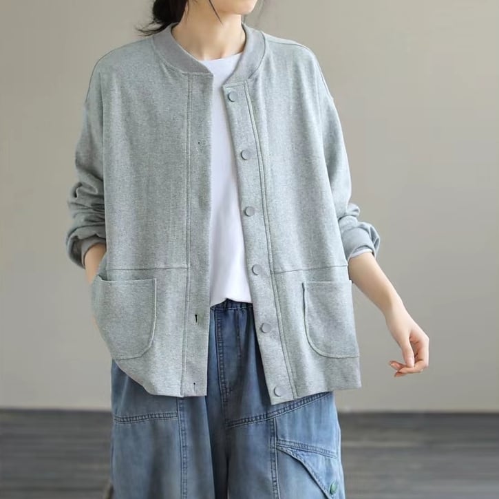 無地のスウェット素材なのでスポーティ過ぎず普段使いがしやすいアウター。
