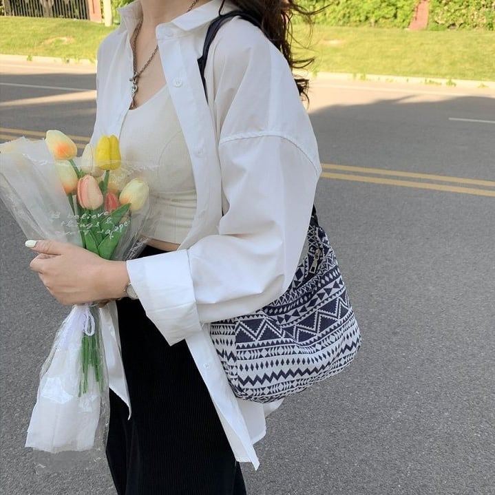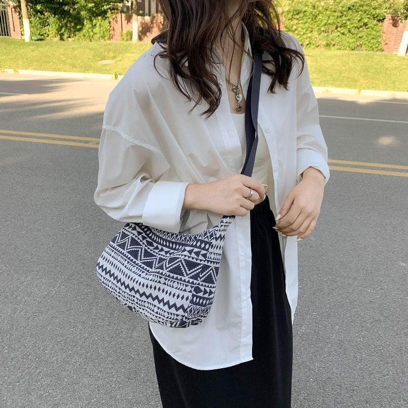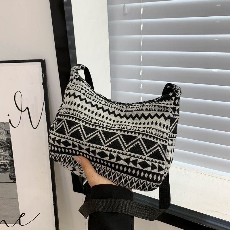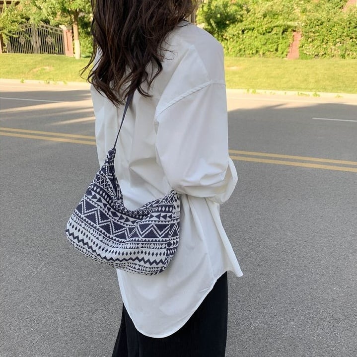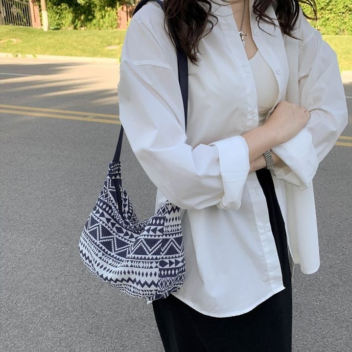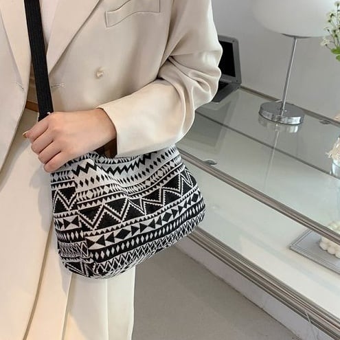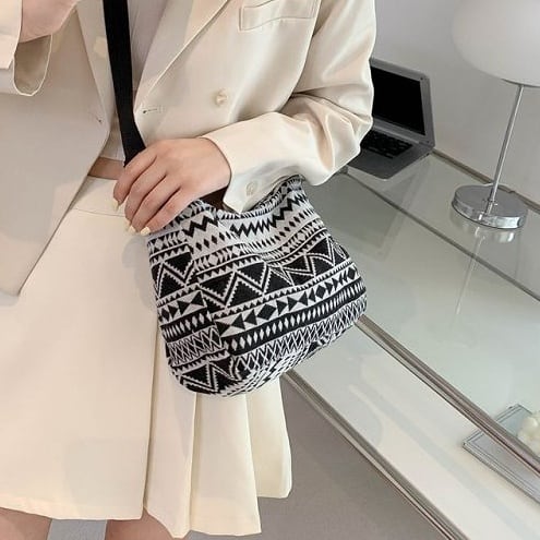 シンプルなファッションにピッタリのネイティブ柄のバッグ。