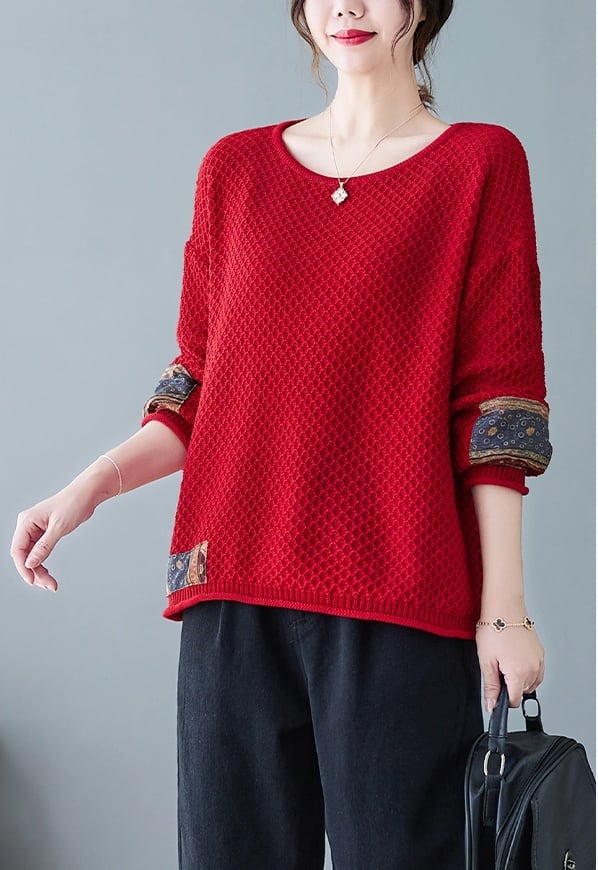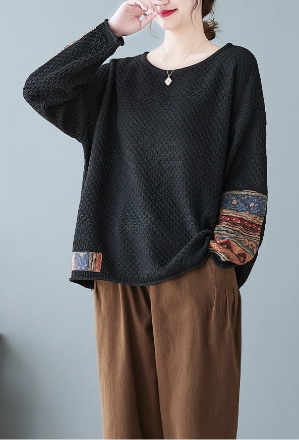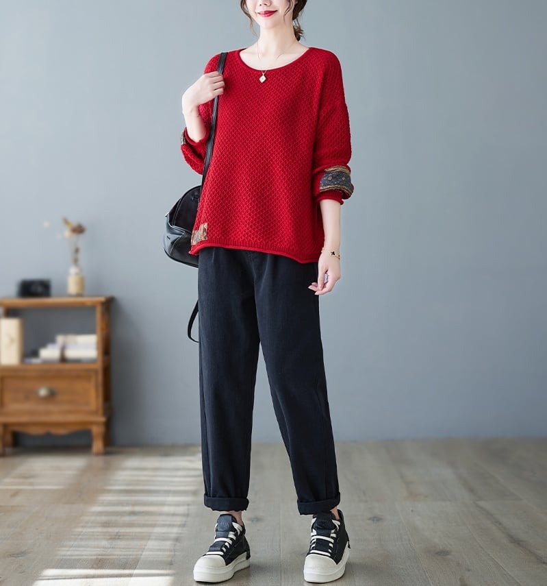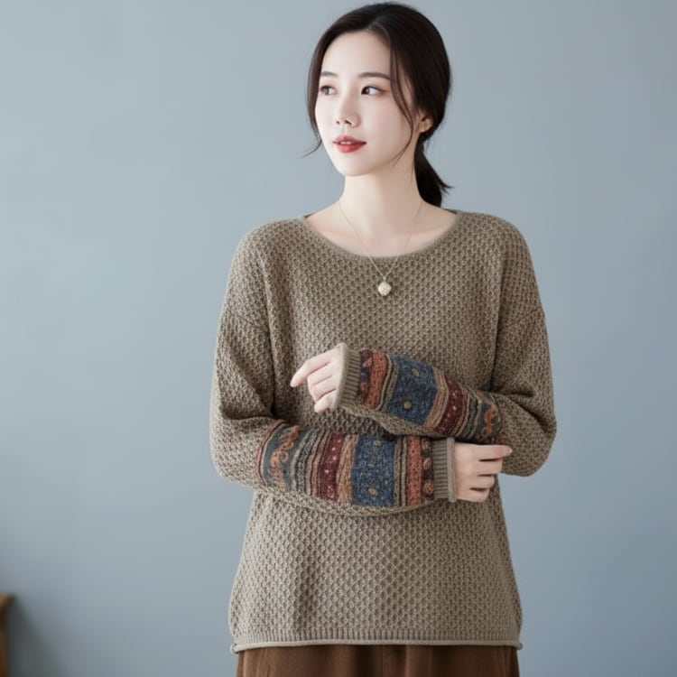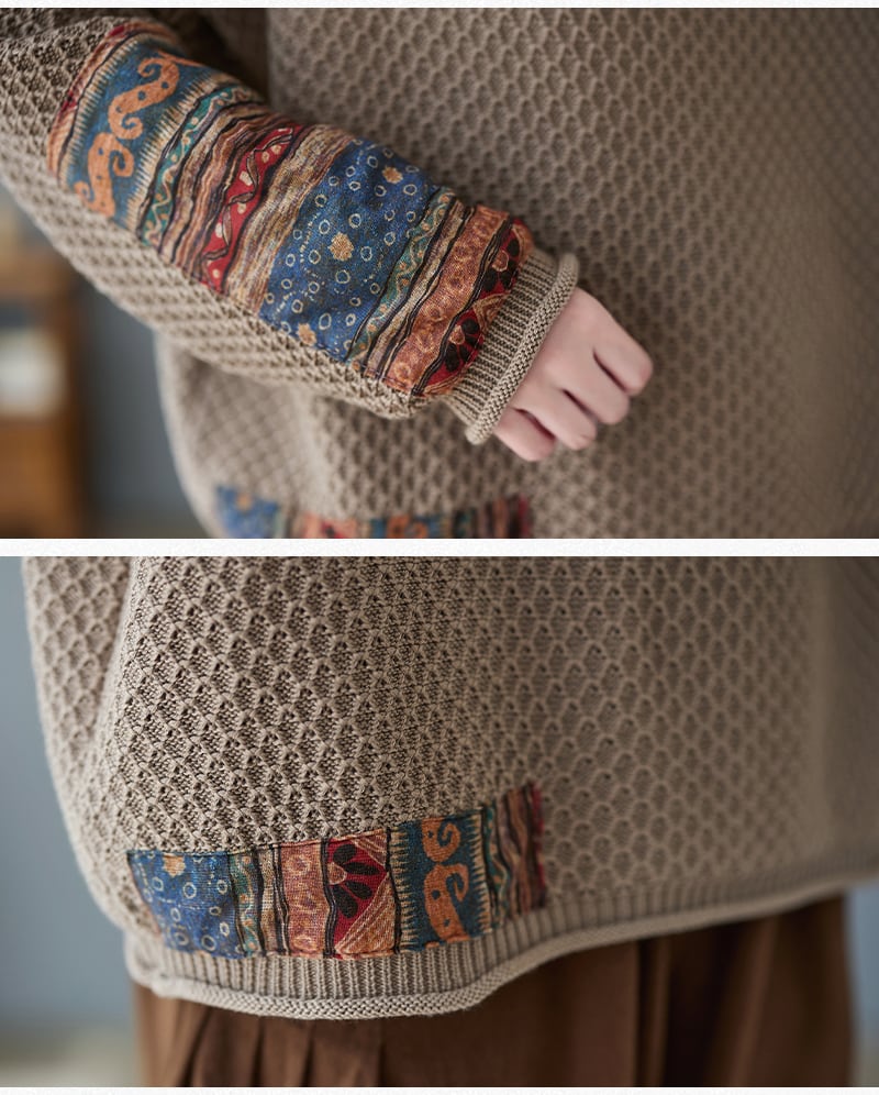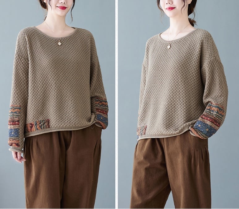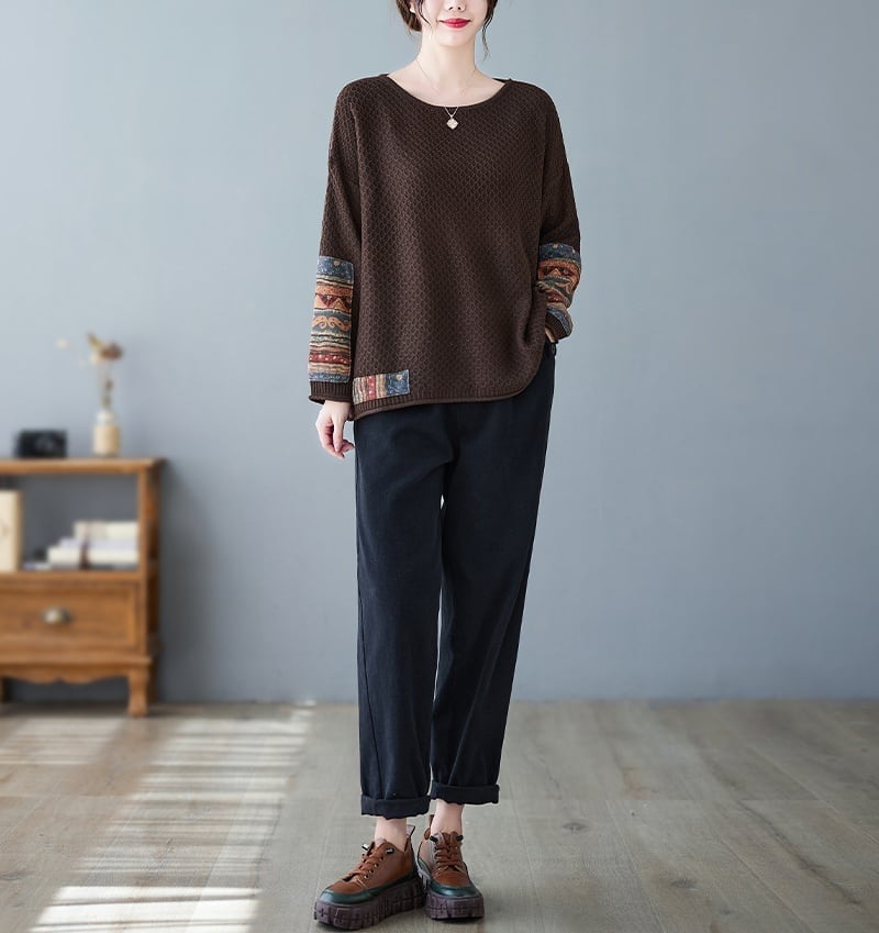 お袖と裾のエスニック柄のパッチが控えめなレトロカラーで