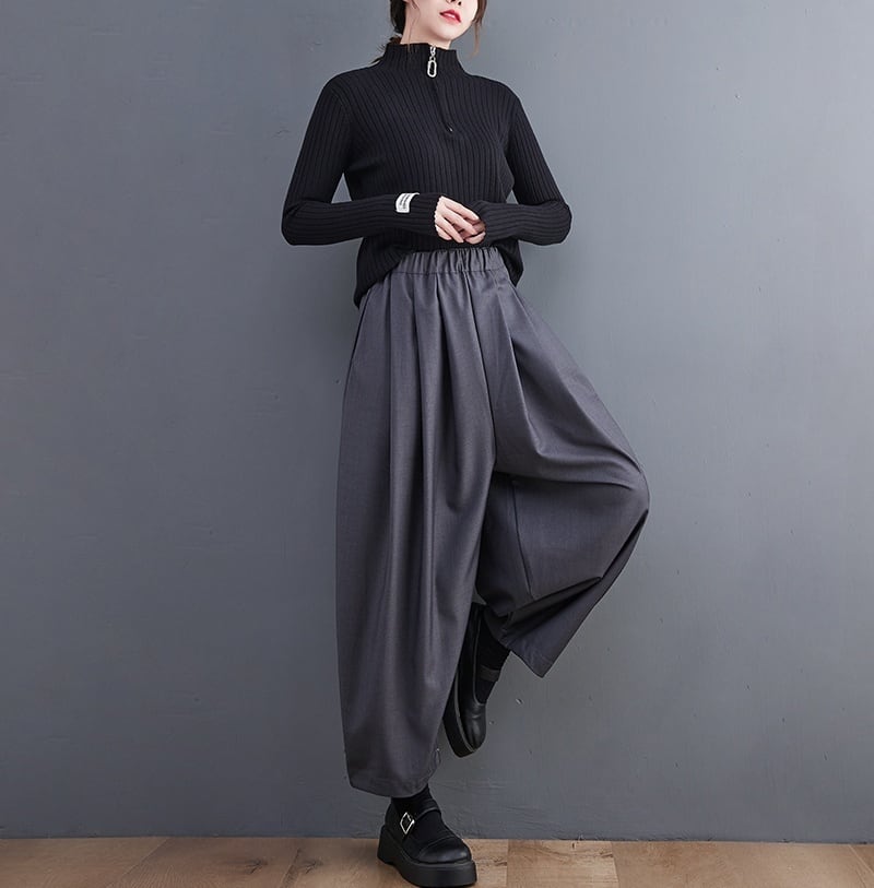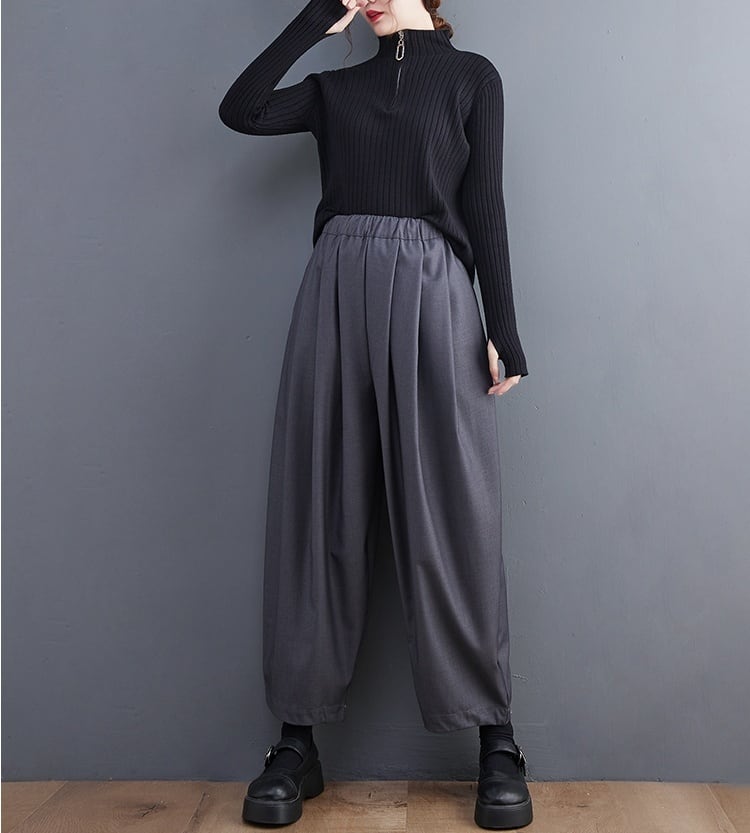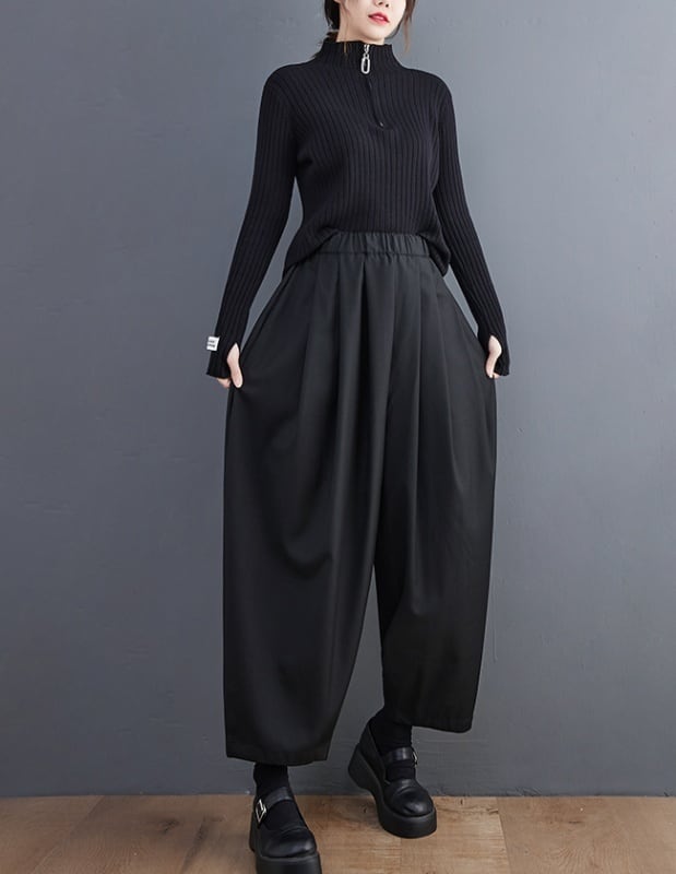 大きめタックがたくさん入ったゆったりとしたパンツ。
