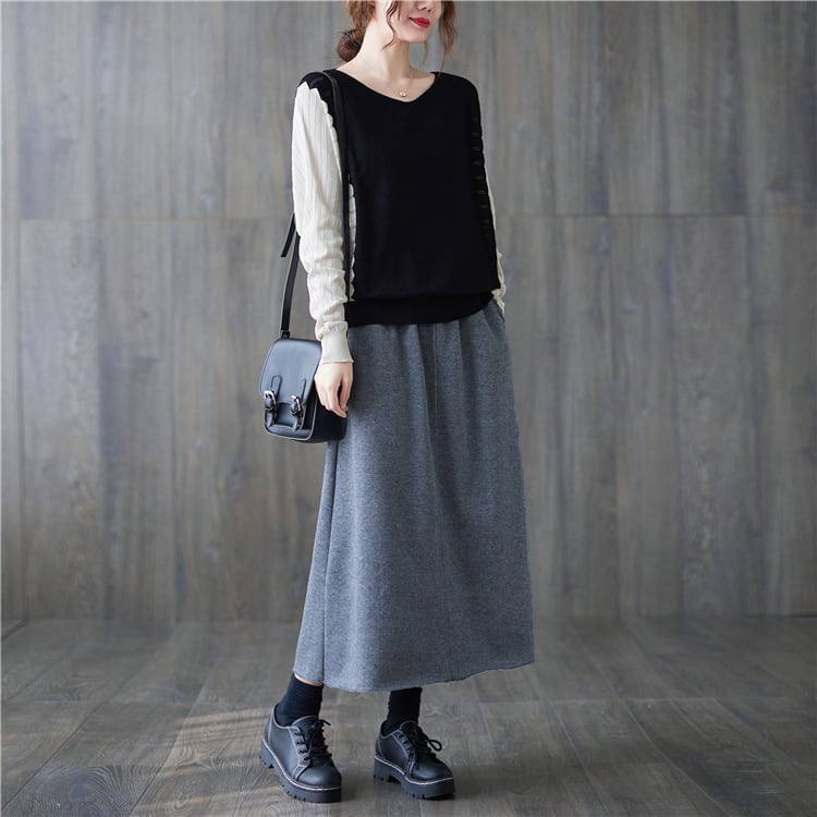伸縮性のある楽チン生地のスカートだから普段使いにピッタリです。