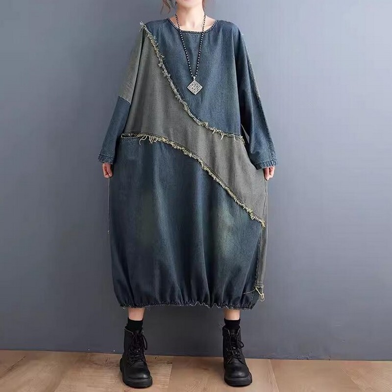 ゆったりとしたコクーンシルエットのロングワンピース。