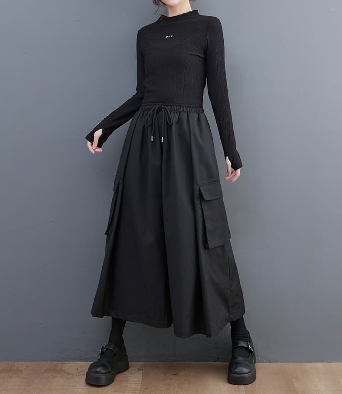 脚長効果抜群のガウチョデザインで、スタイルアップも叶えます。