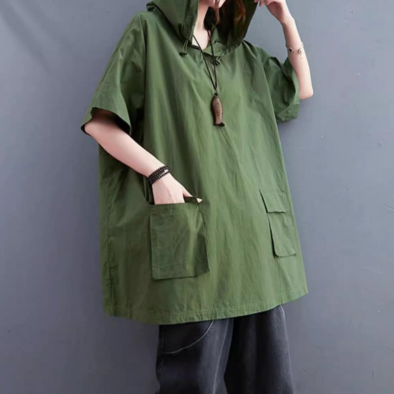 普段着からアウトドアまで使えるプルオーバーフードです。