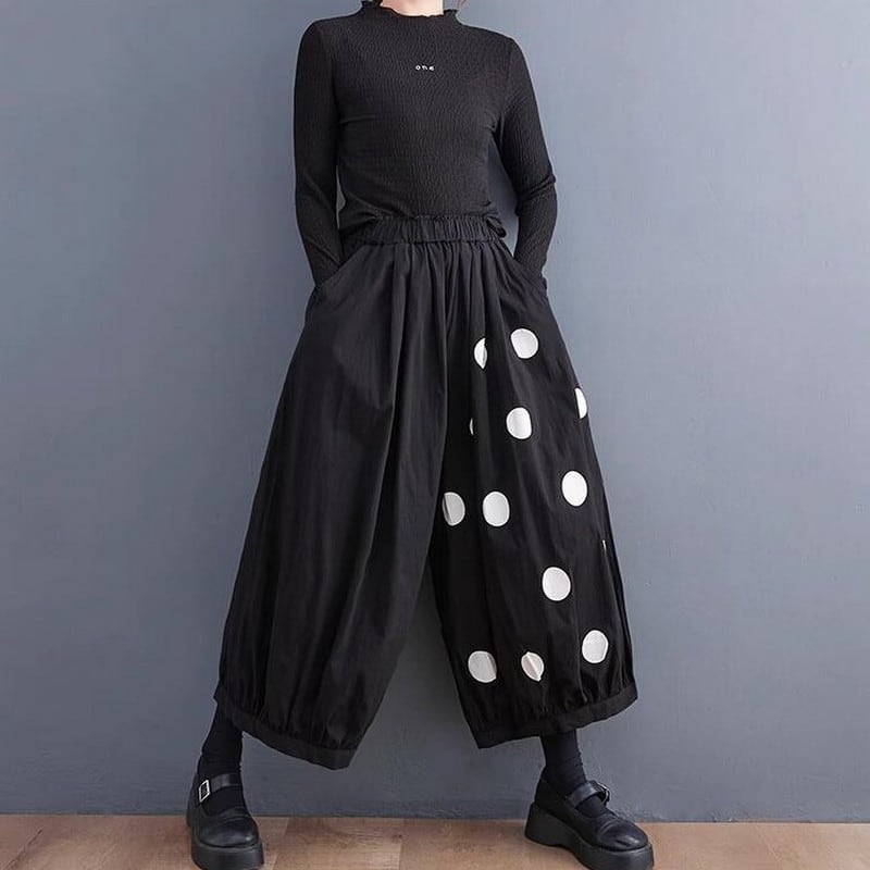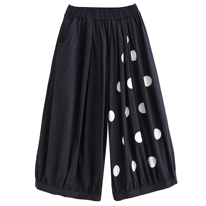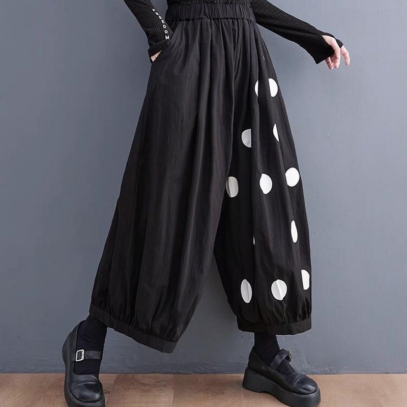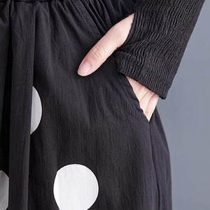 シンプルなガウチョパンツも一部にドットが入るだけで