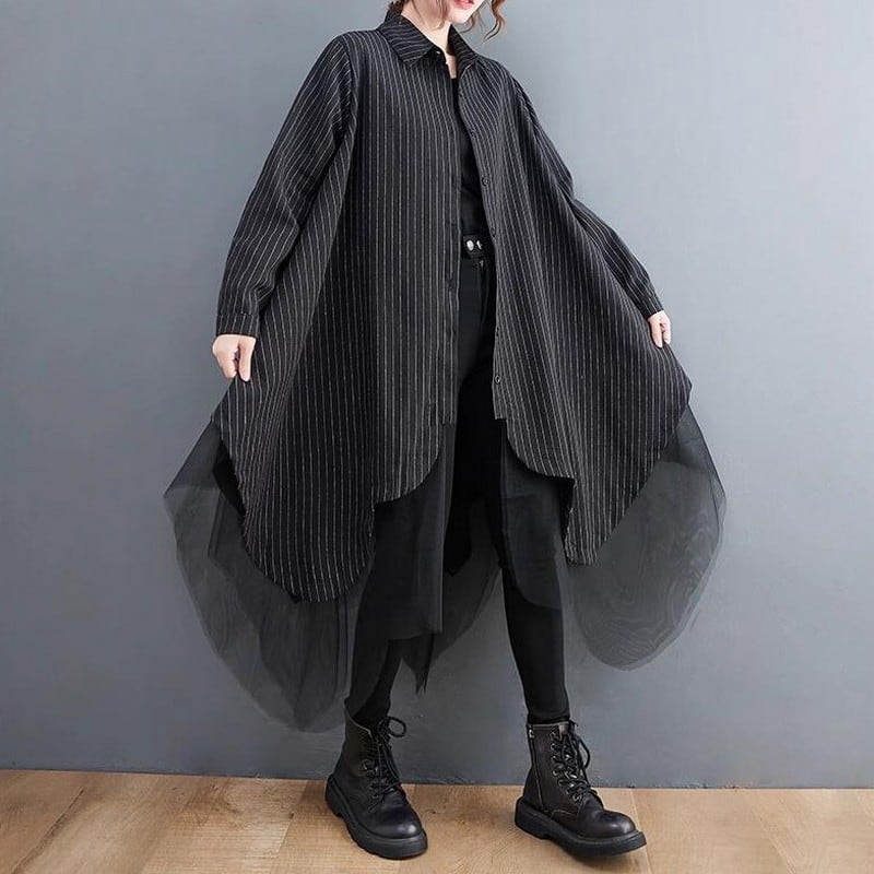 メッシュレイヤードスカラップシャツワンピース(2色)10320