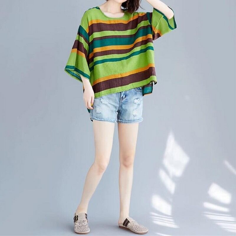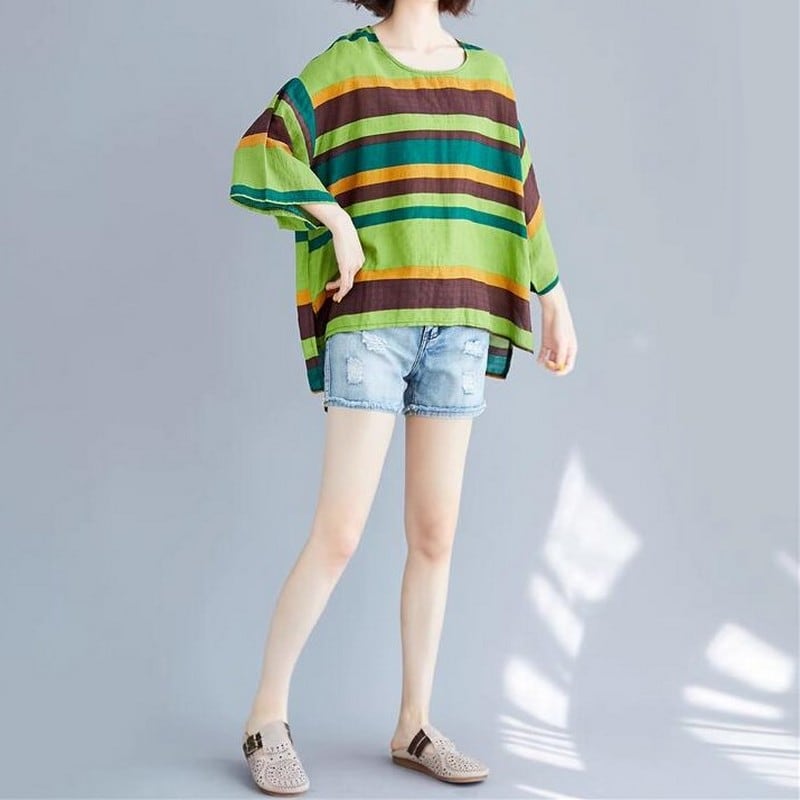 五部袖ラウンドネックマルチボーダーカットソー10335