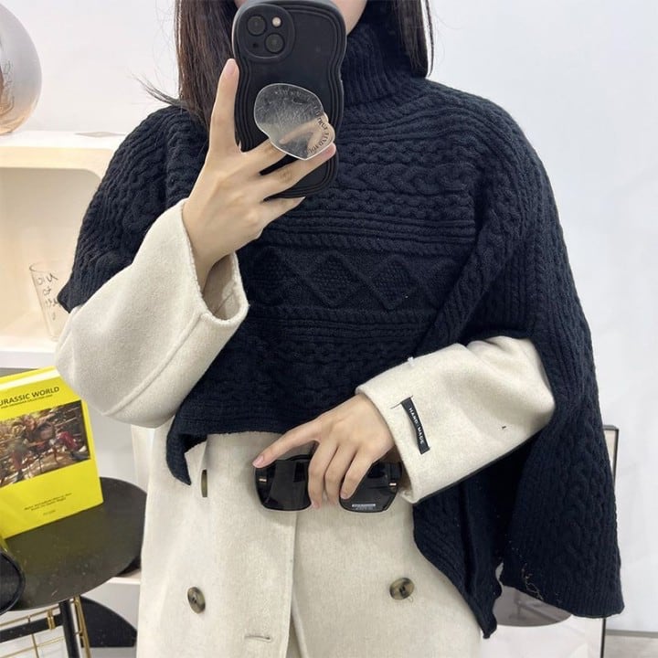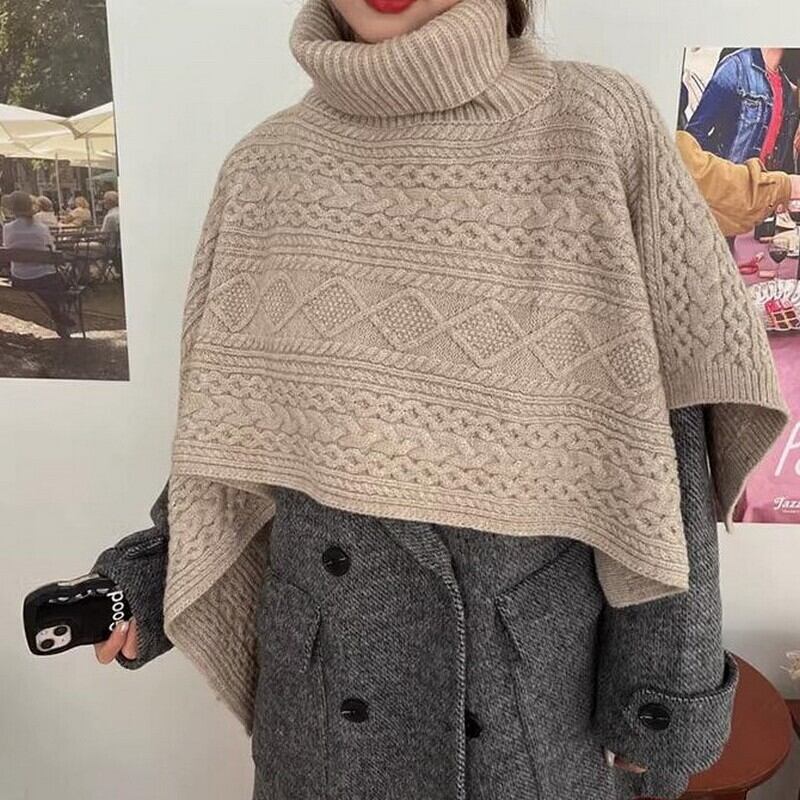 アラン模様ニットケープ(4色)10453