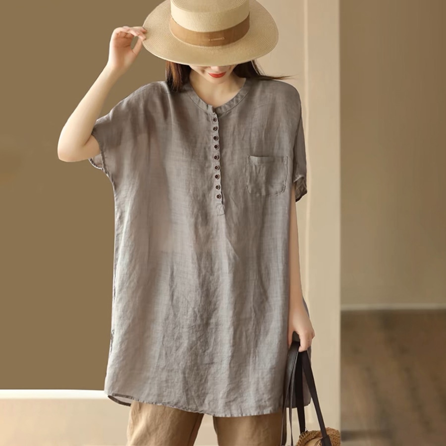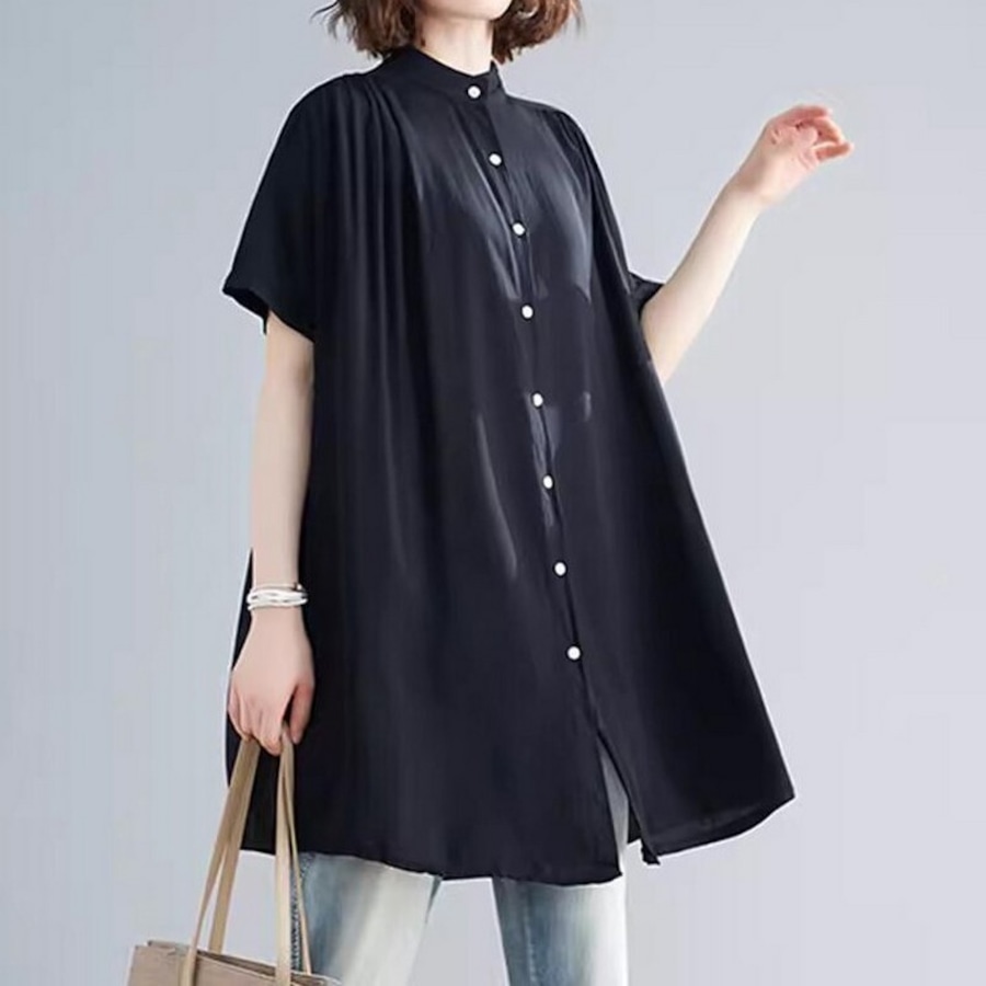 ボタンを全て閉めても少しあけてインナーをみせても、羽織っても、上からニットなどを重ね着しても使える着回し万能アイテムです。
