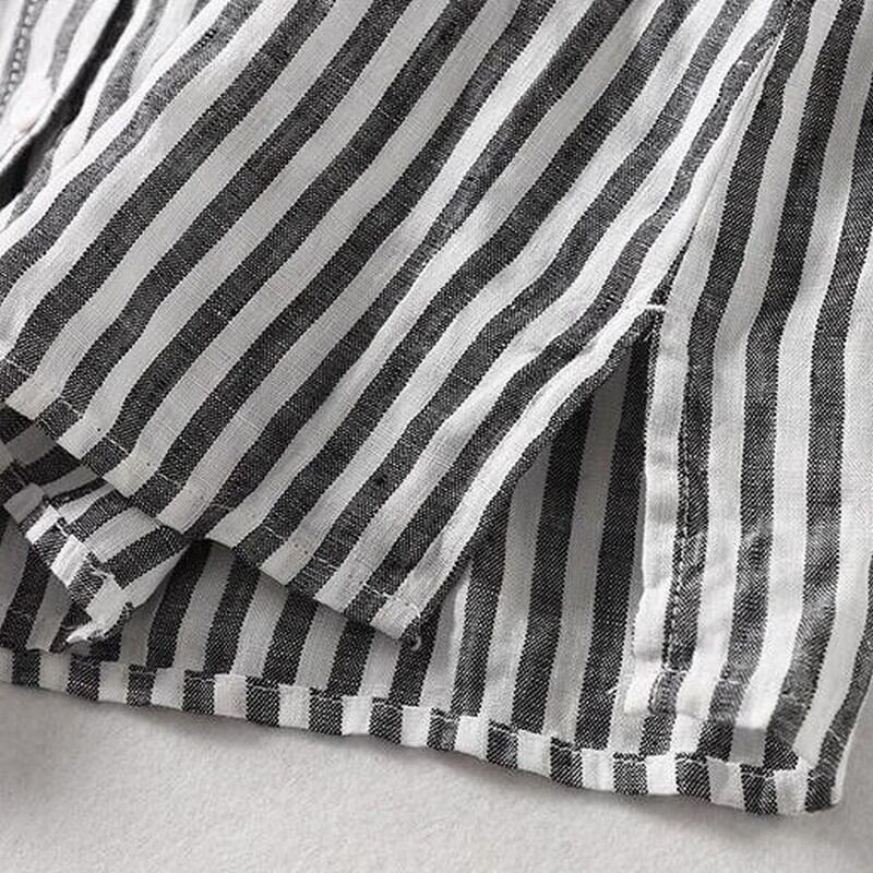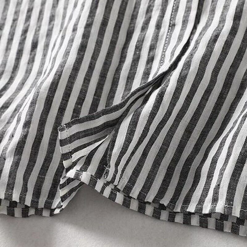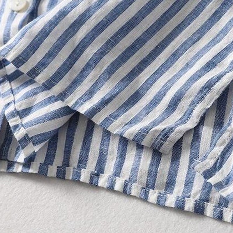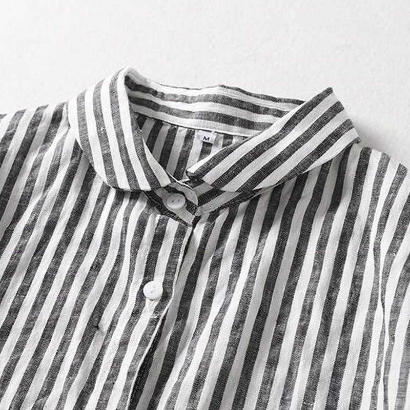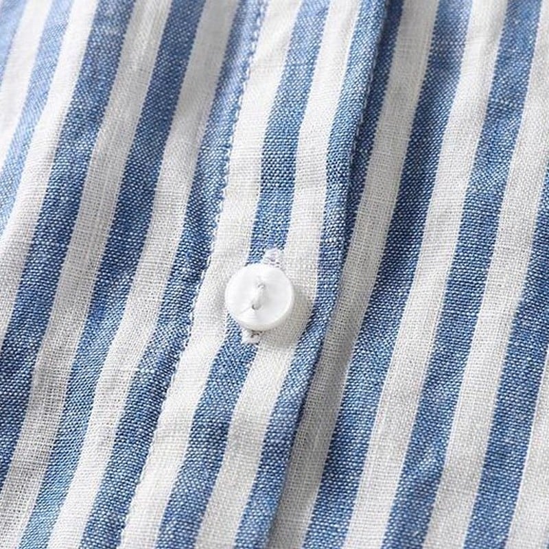 ストライプの色味もちょうどいい合わせやすい色味で、生地の風合いも合わさって優しい印象にしてくれます。