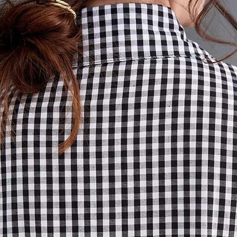 柄の大きさが違うギンガムチェックがデザインされたワンピース。