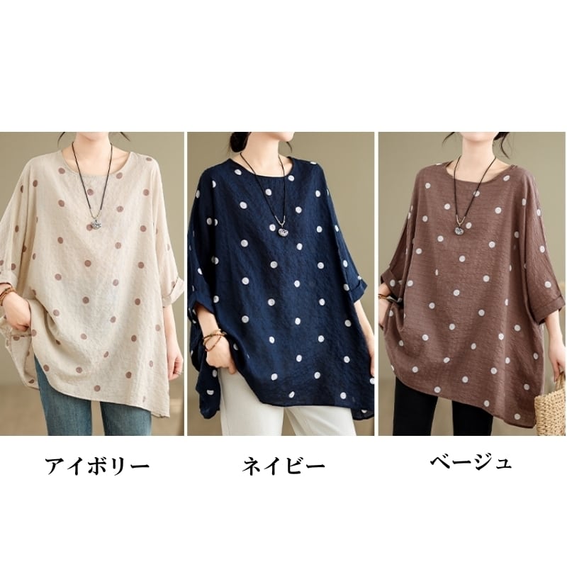 ナチュラルドルマンスリーブドットチュニック(3色)10675