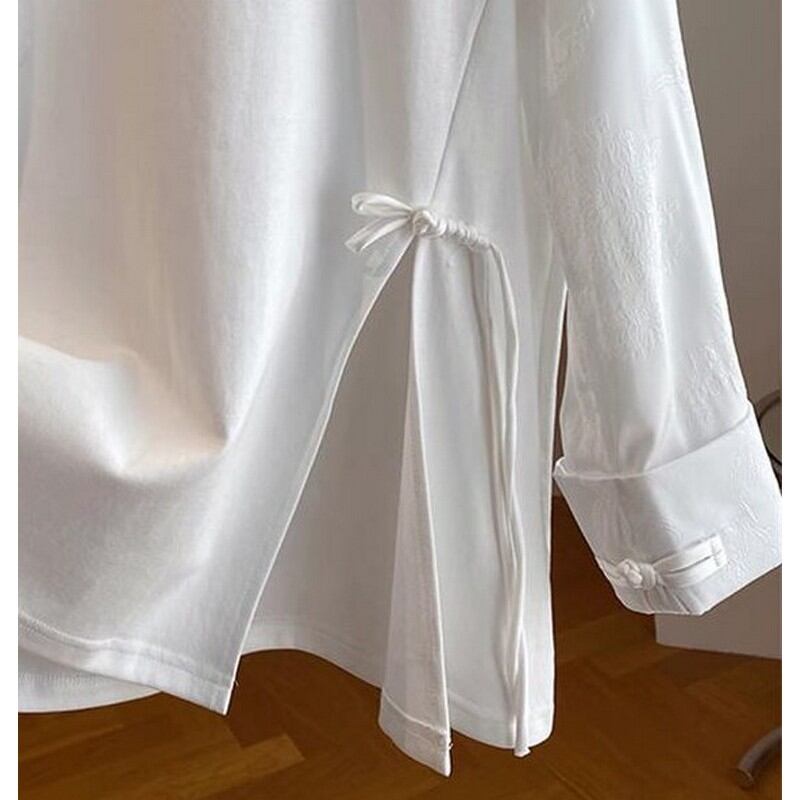 裾と袖にチャイナボタンがアクセントしてデザインされているカットソーです。