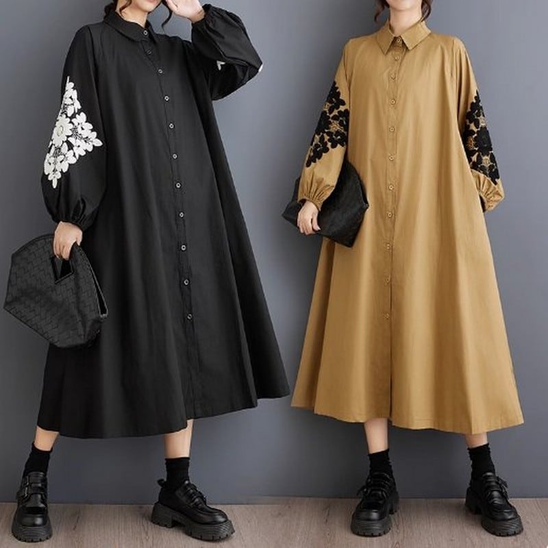 刺繍スリーブシャツワンピース(2色)10844