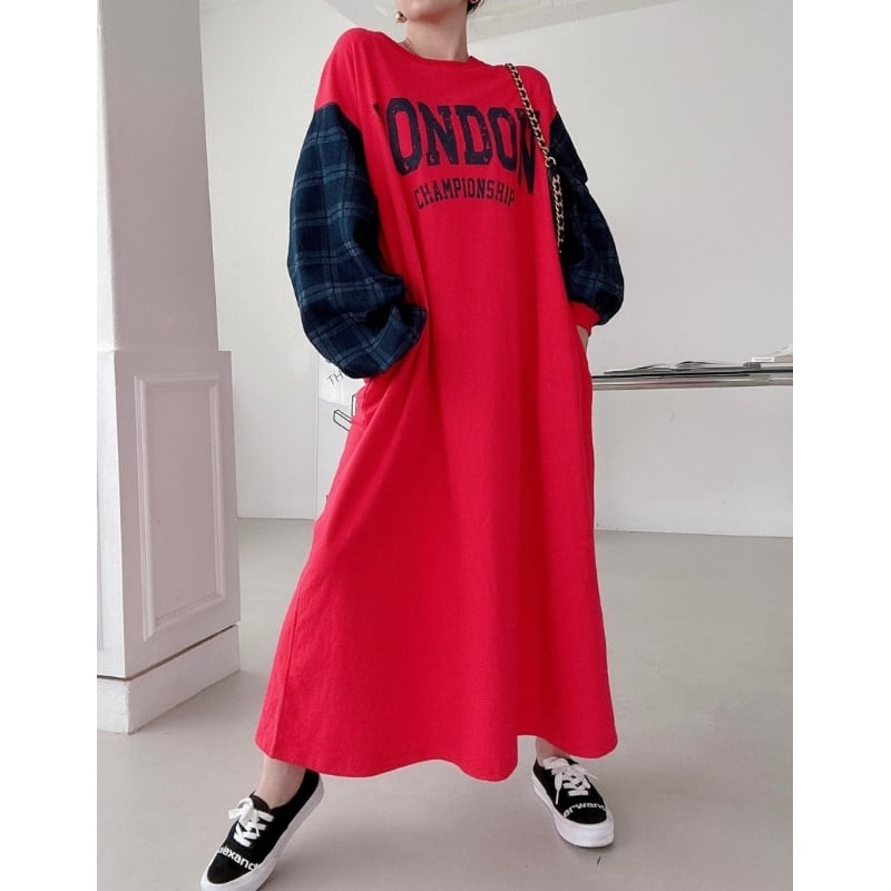 オーバーサイズ袖切替スウェットワンピース(4色)10811
