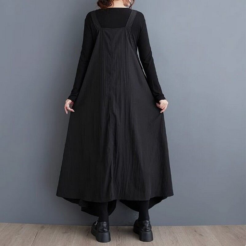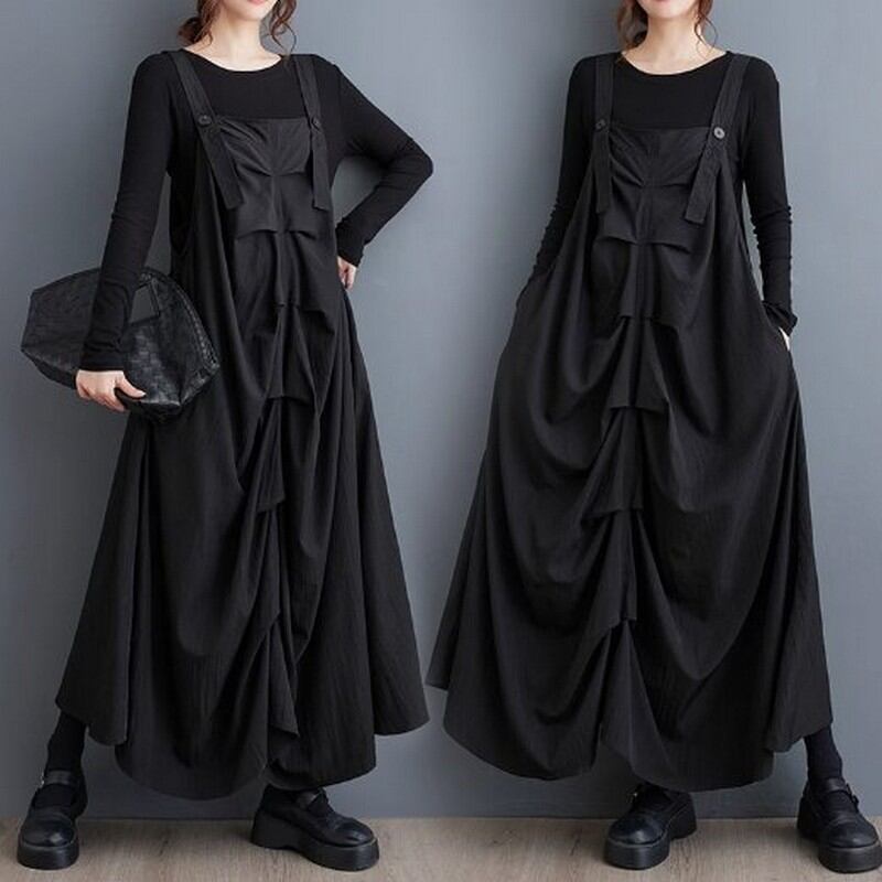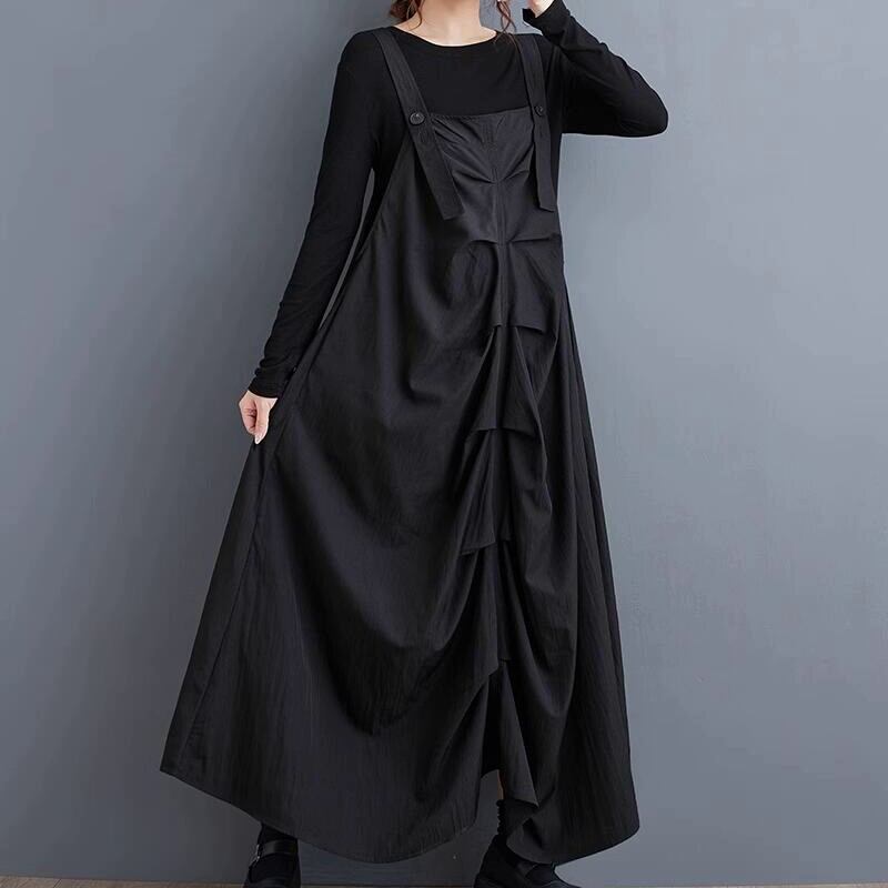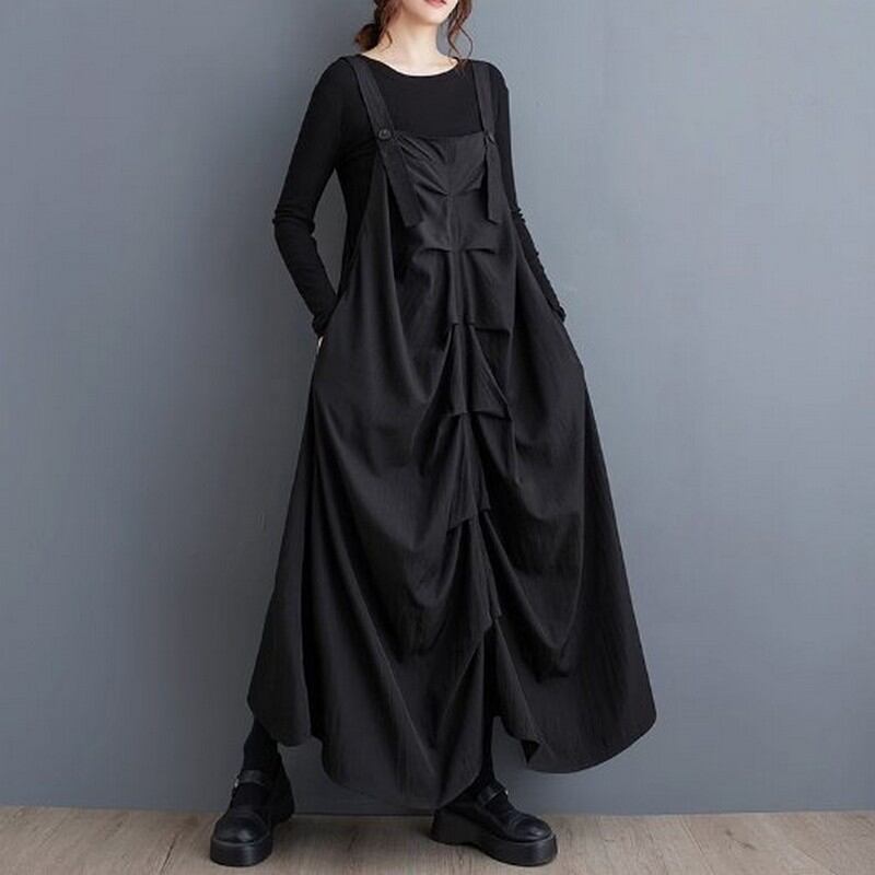 立体的なドレープデザインが目を引くモード感溢れるサロペットワンピース。