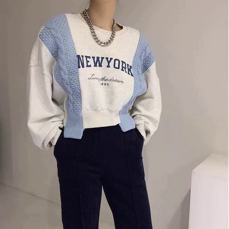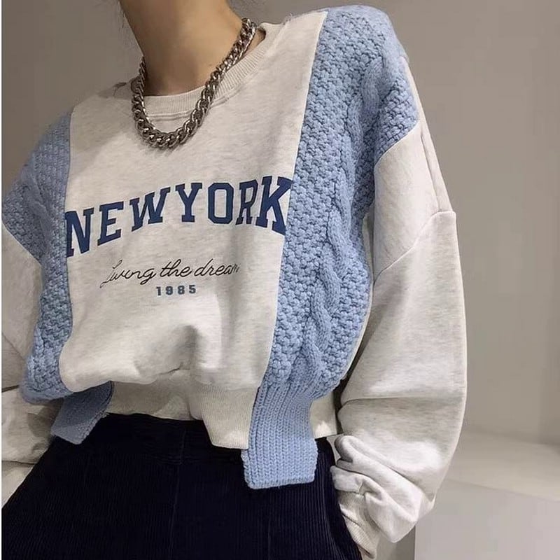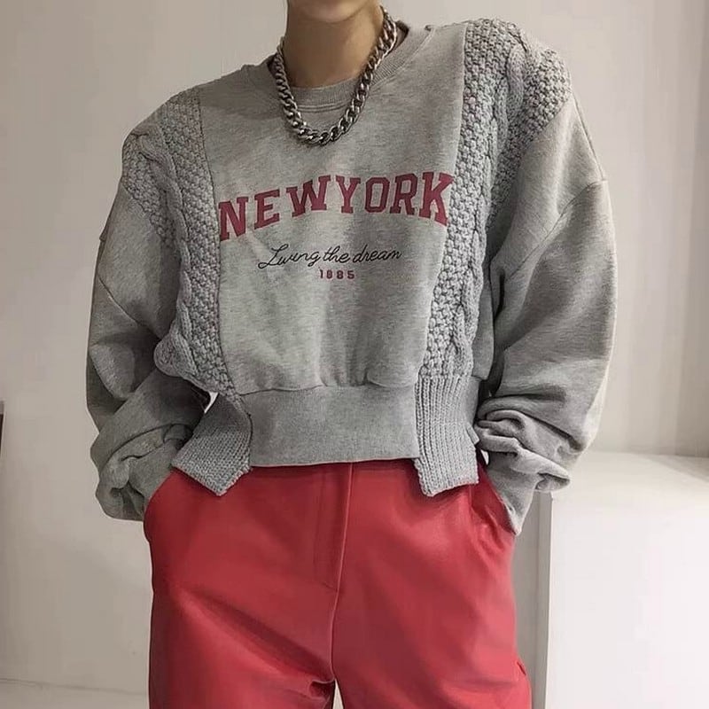 ヴィンテージプリントランタンスリーブミックススウェット(2色)10109
