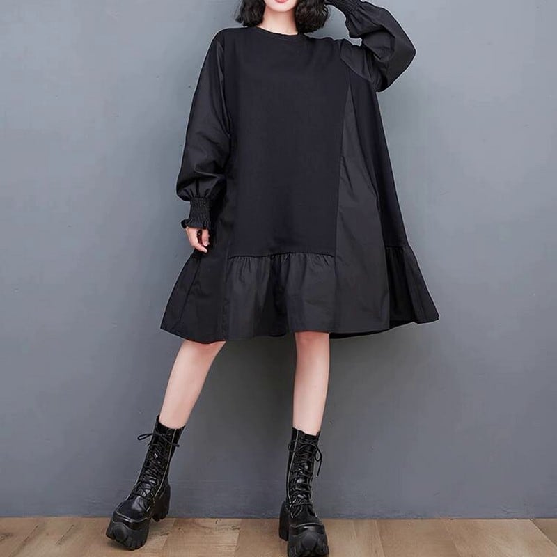 ラウンドネックとロングスリーブがカジュアル感を演出し、裾の切替ディテールが個性をプラス。