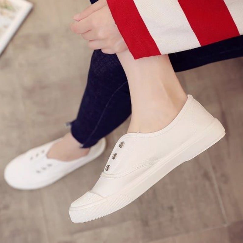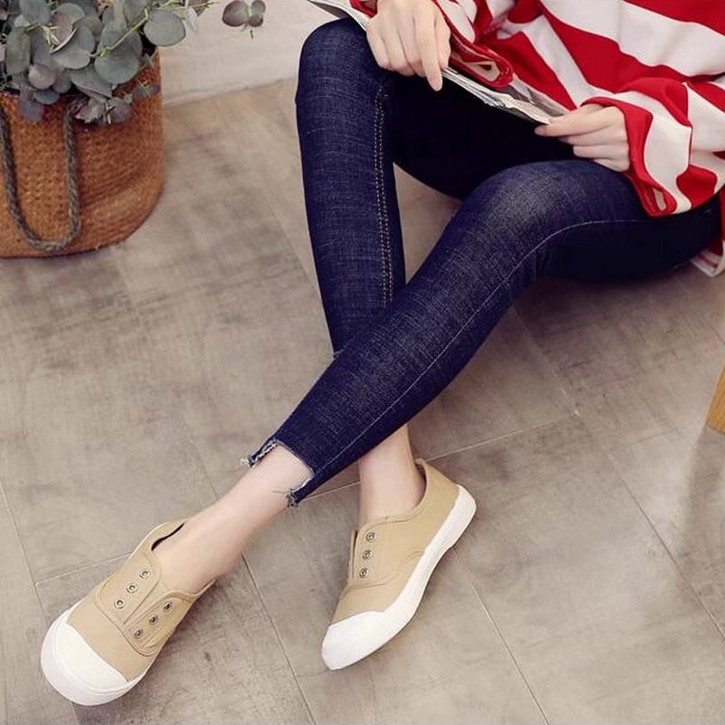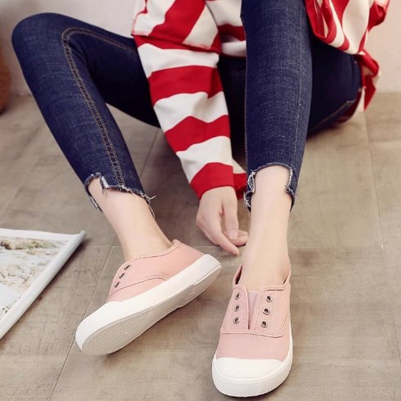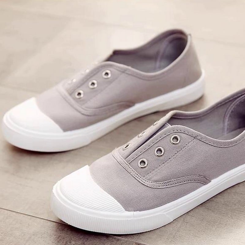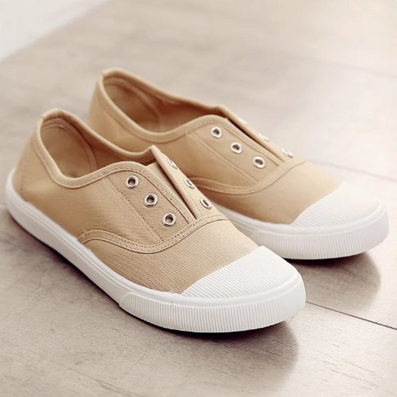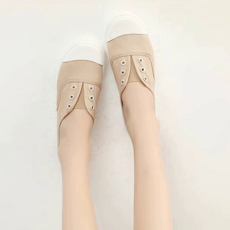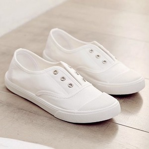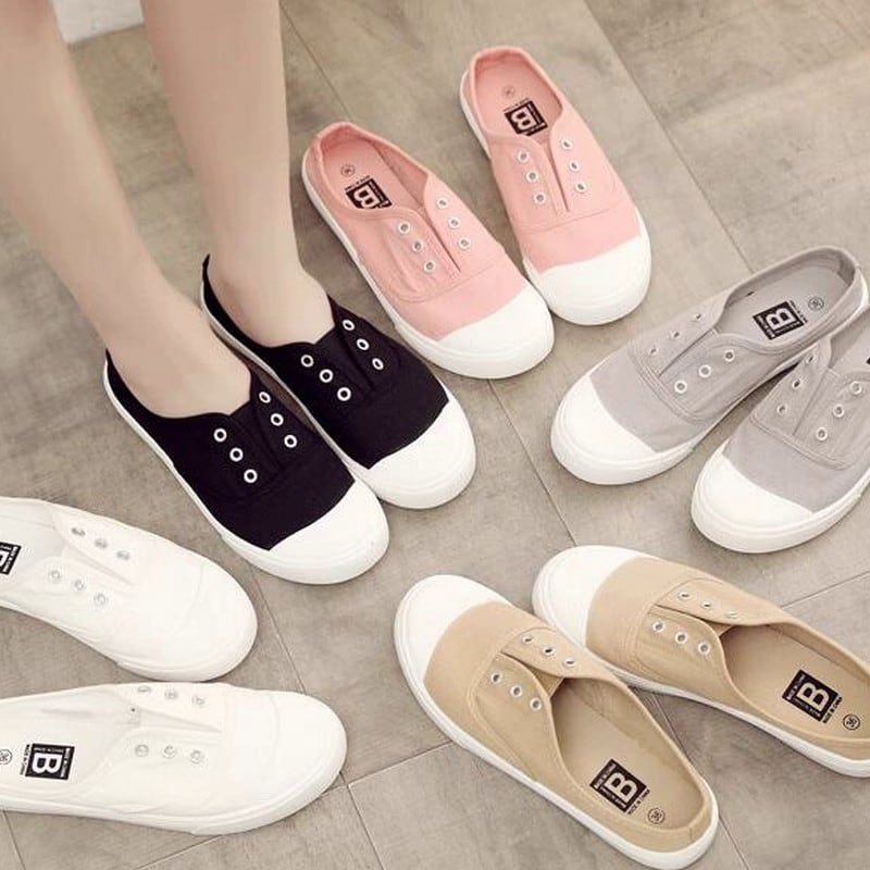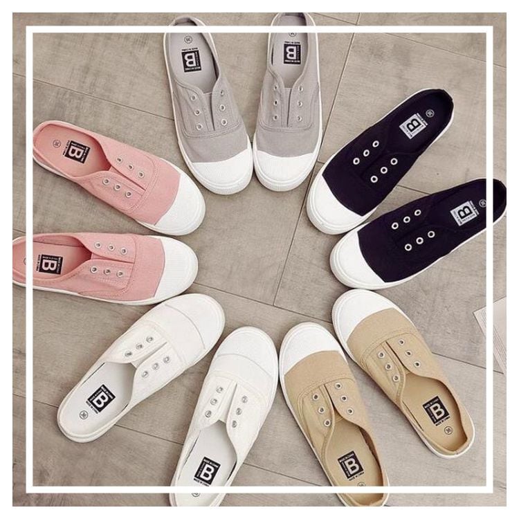 見た目は紐なしのスニーカーの様なデザインですが、片手でさっと捌けるスポーティーなミュールです。爪先が丸いので長く履いていても痛くなりにくく、通気性がよく滑りにくので普段遣いにぴったりです。カラーソックスと合わせても可愛いですね。