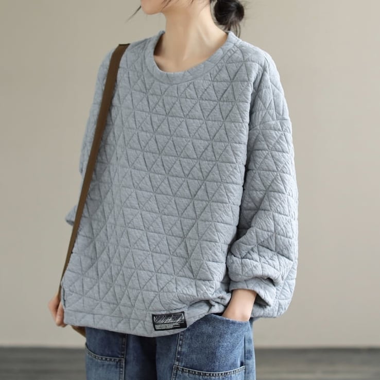 キルティングデザインがポイントのゆったりプルオーバーです。リラックスした着心地ながら、程よいおしゃれ感がうれしい一枚。
