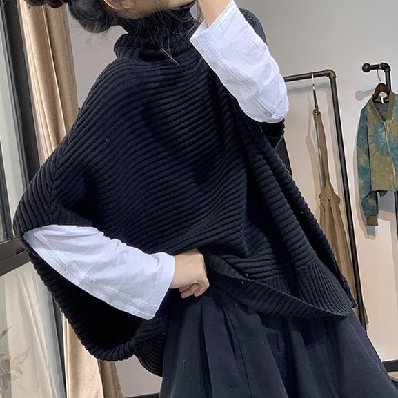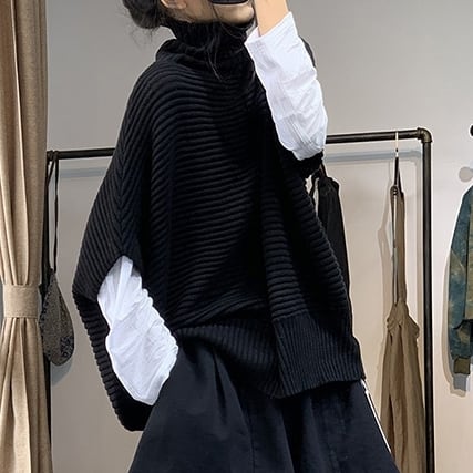 リラックス感とスタイルアップを両立したリブ編みプルオーバー。