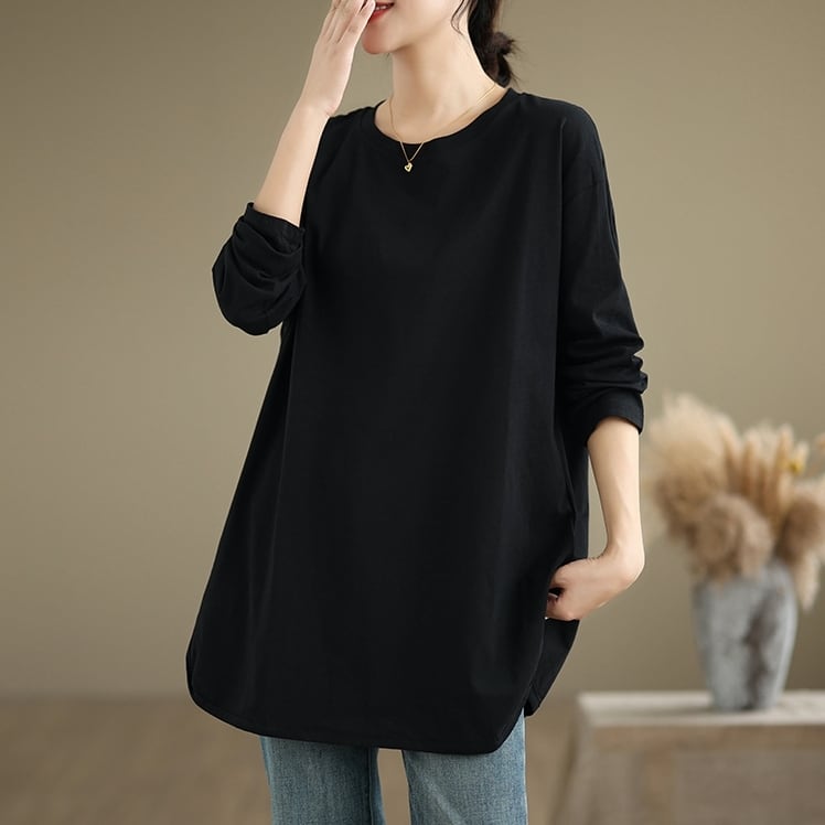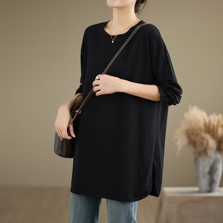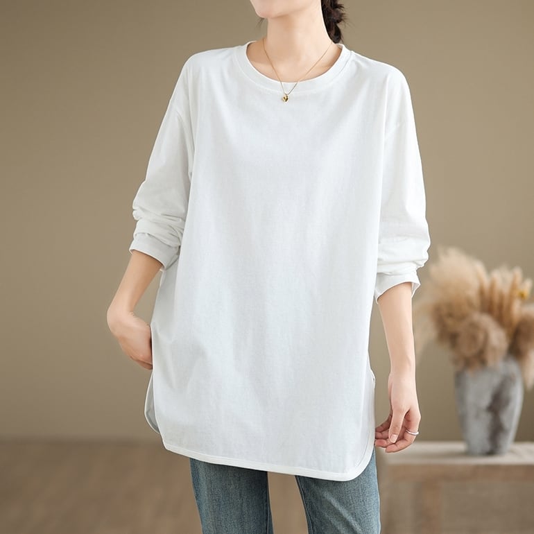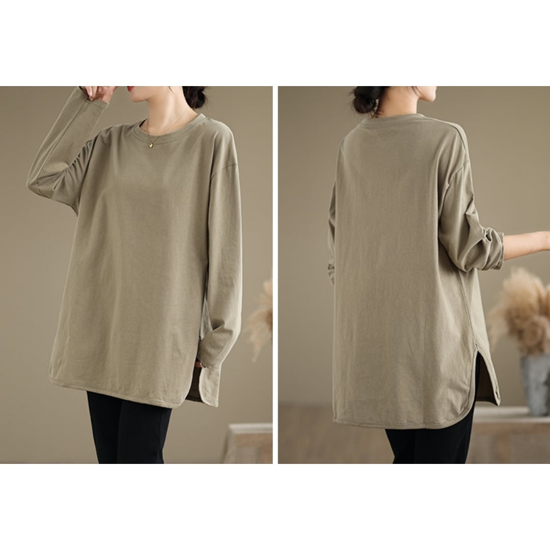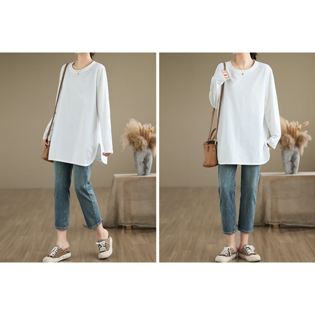 ゆったりとしたフィット感で、シンプルかつエレガントなロングTシャツです。